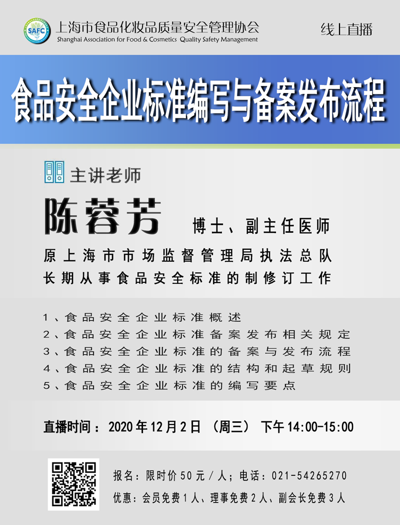 关于举办《食品安全企业标准编写与备案发布流程》线上直播培训的通知