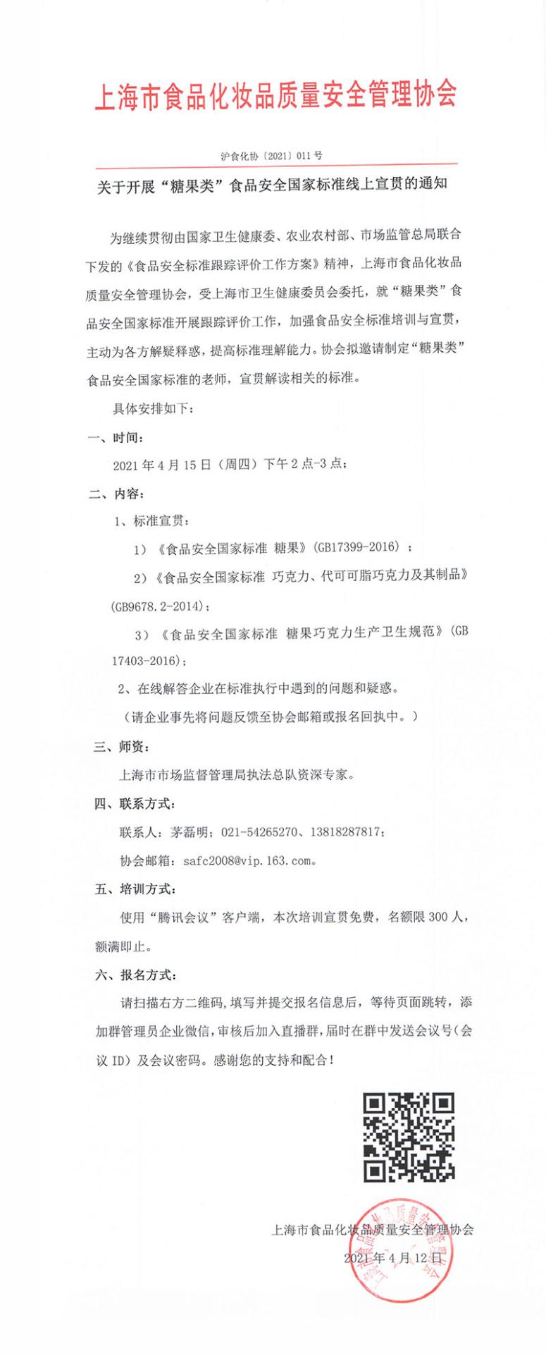 关于开展“糖果类”食品安全国家标准线上宣贯的通知