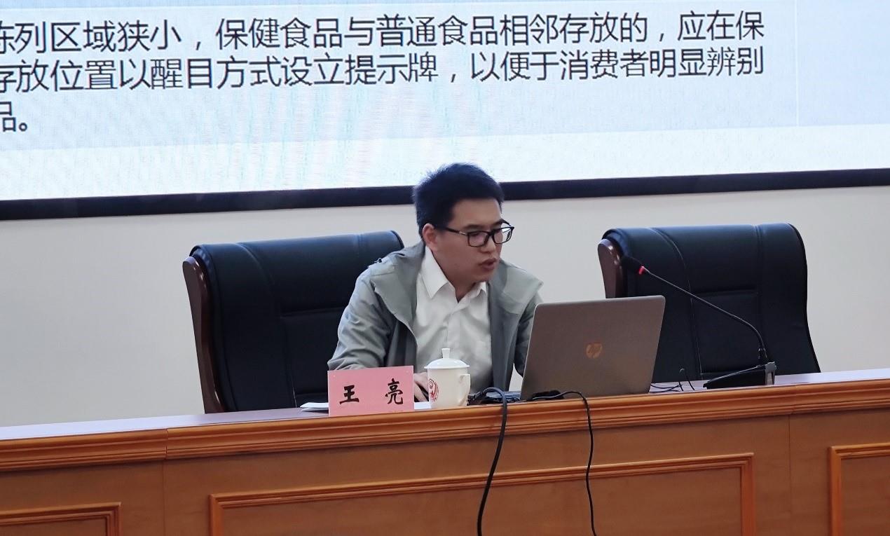 王亮老师介绍了编制《保健食品经营管理规范》的背景意义和构成框架,并重点就《管理规范》中的一般要求、专区专柜要求、商品包装要求、广告和宣传要求、价格管理要求、直销经营要求、网络经营要求、信息追溯要求及食品安全自查要求等九大项要求的具体内容进行了细致解析。