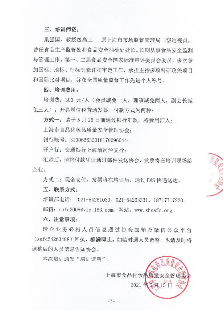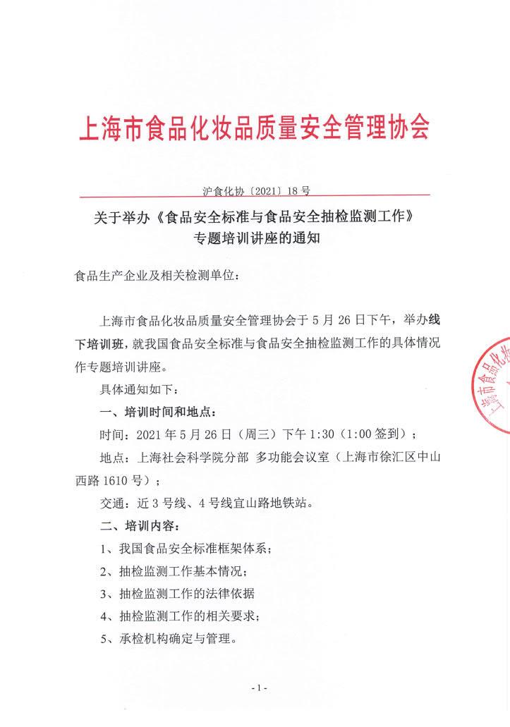 关于举办《食品安全标准与食品安全抽检监测工作》专题培训讲座的通知