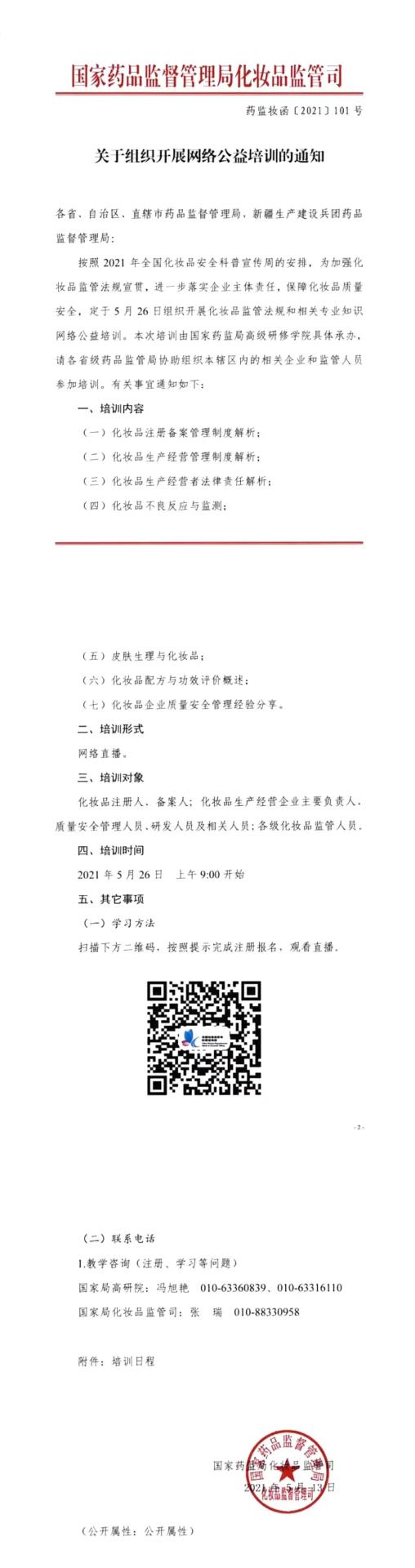 国家药监局化妆品监管司关于组织开展网络公开培训通知