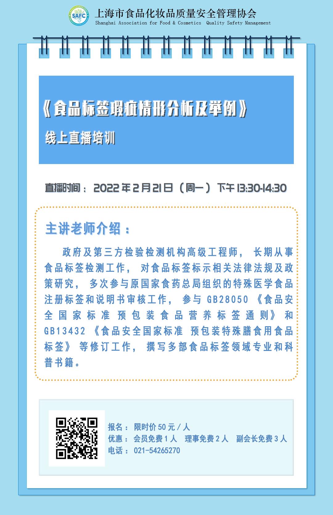【培训】《食品标签瑕疵情形分析及举例》线上培训-2022年2月21日