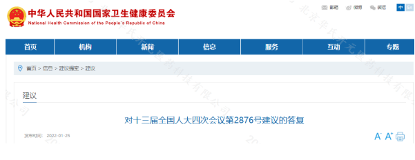 2022年1月25日,国家卫健委发布了《对十三届全国人大四次会议第2876号建议的答复》,就代表们提出的《关于加快特殊医学用途特定全营养配方食品国家标准出台的建议》给出了答复。