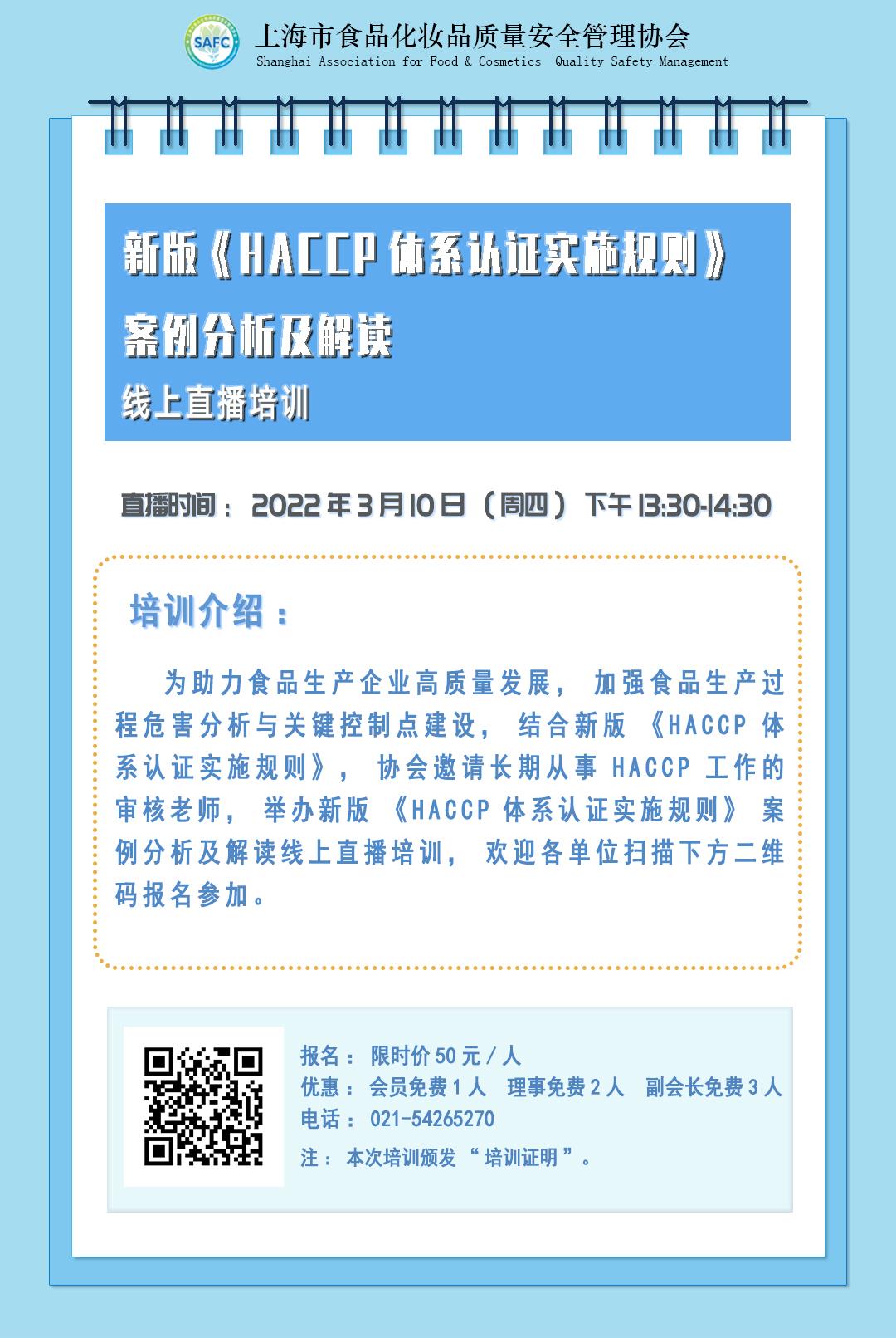 【培训】新版《HACCP体系认证实施规则》案例分析及解读 线上培训-2022年3月10日