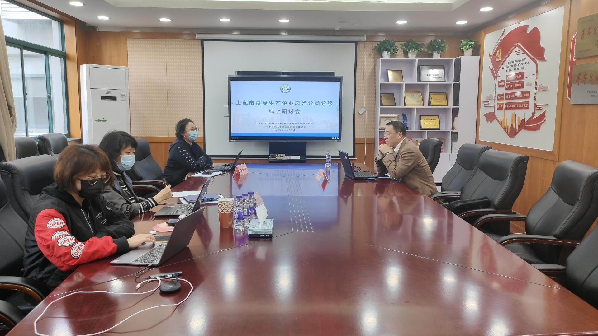 受疫情影响,2022年3月11日,原定于线下召开的上海市食品生产企业风险分类分级研讨会改为线上举办,上海市市场监管局食品生产安全监督管理处相关领导与部分区局食品生产监管人员、上海市质量和标准化研究院相关人员、协会专家及协会秘书处通过视频连线的方式,参加了本次会议。