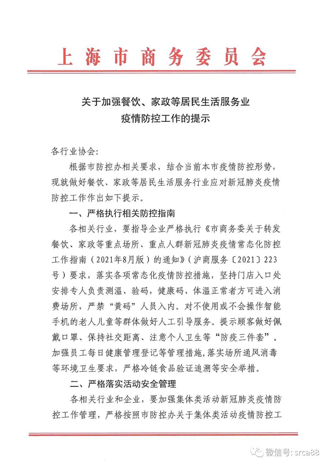关于加强餐饮、家政等居民生活服务业 疫情防控工作的提示