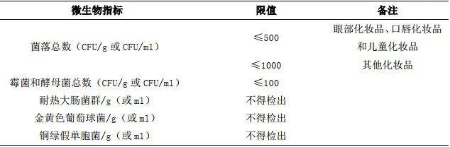 化妆品中微生物指标限值 l 《化妆品安全技术规范》(2015年版)