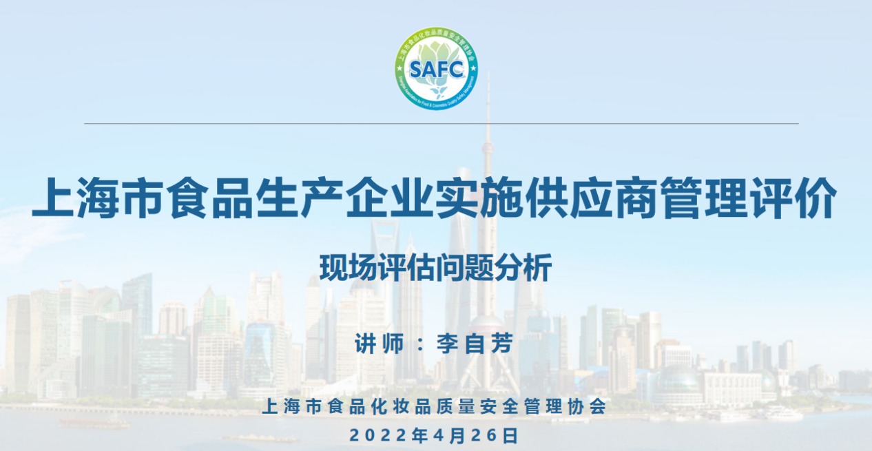 上海市食品化妆品质量安全管理协会于2022年4月26日下午举办了“上海市食品生产企业实施供应商管理评价现场评估问题分析”公益直播培训,结合上海市食品化妆品质量安全管理协会在2020年5月发布的《上海市食品生产企业供应商食品安全检查评价实施指南》,帮助企业进一步完善供应商管理评价制度。来自本市和长三角地区159家相关单位的278名代表参加了线上培训。