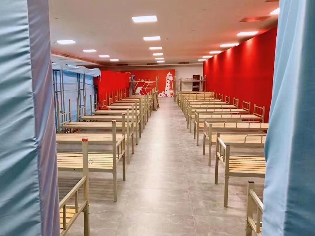 员工到位了,为了让这些牺牲“小家为大家”的员工能在静态管理的状态下尽可能生活得更有质量,公司想尽一切办法改善员工的生活条件。厨房每顿都给大家伙儿加餐,设法保证营养;工程师设法把采购到的上下铺的床改造成两张单人床,就是为了让工人们睡得更加舒服;并在生活区做隔断、玻璃幕墙上安装窗帘、铺设地毯,让每个班次的员工都能静心休息。
