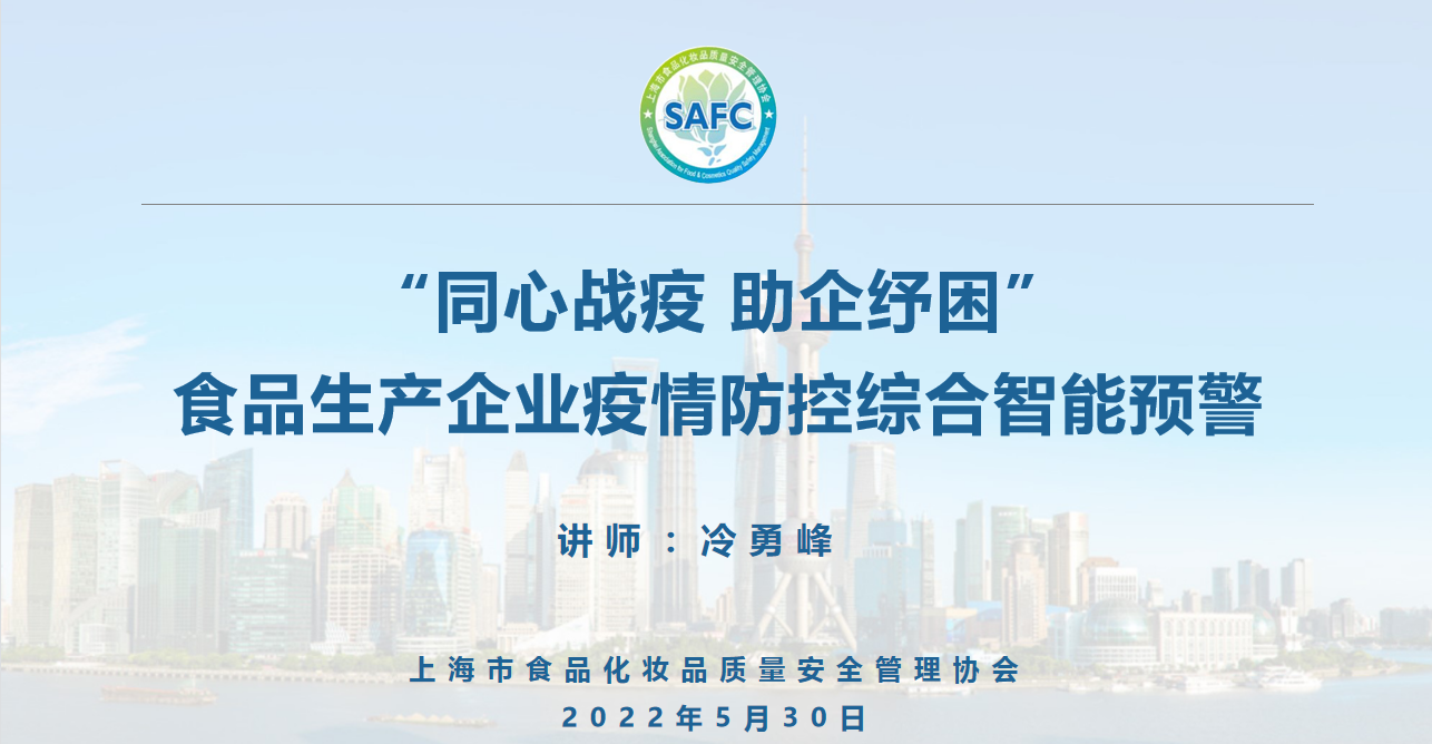 上海市食品化妆品质量安全管理协会于2022年5月30日下午举办了“同心战疫 助企纾困” 食品生产企业疫情防控综合智能预警线上公益直播培训。来自本市和长三角地区76家相关单位的104名代表参加了线上培训。