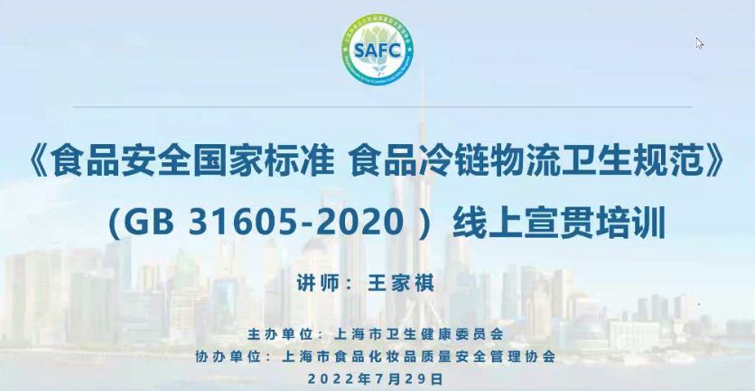 2022年7月29日,上海市食品化妆品质量安全管理协会受上海市卫生健康委员会委托,举办了《食品安全国家标准 食品冷链物流卫生规范》(GB 31605-2020)线上宣贯培训。来自本市和长三角地区138家相关单位的206名代表参加了线上培训。