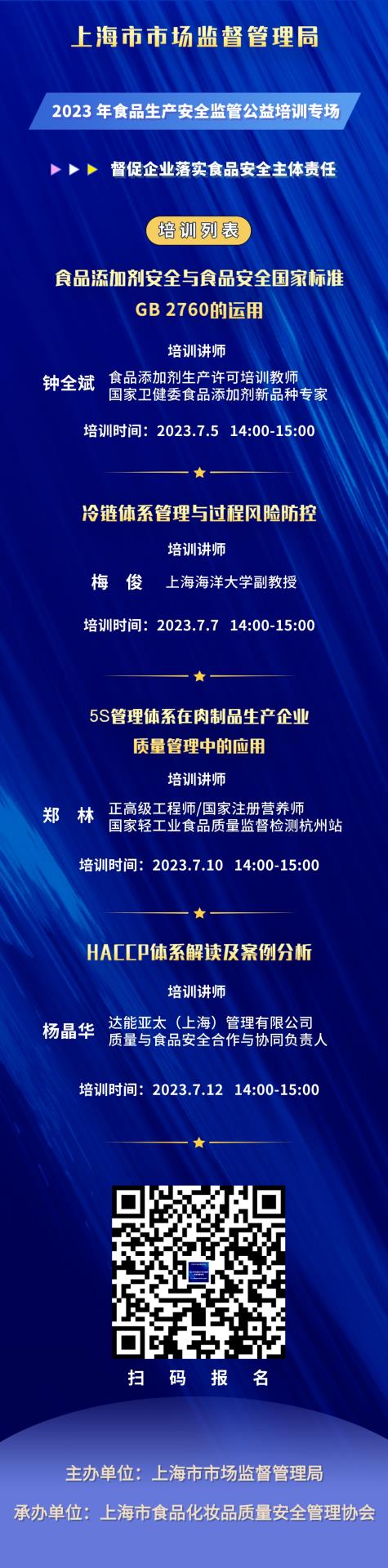 【公益培训】2023年食品生产安全监管公益培训专场——2023.7.5~2023.7.12