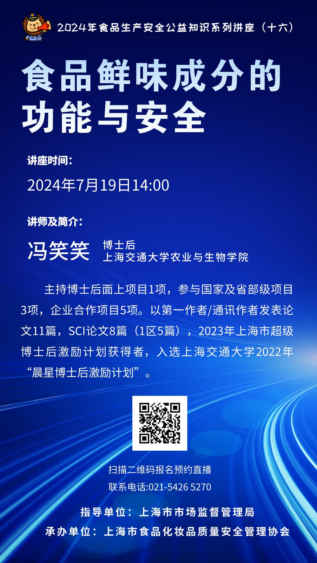 【公益讲座】2024年食品生产安全公益知识讲座(十六)食品鲜味成分的功能与安全——2024年7月19日 14:00
