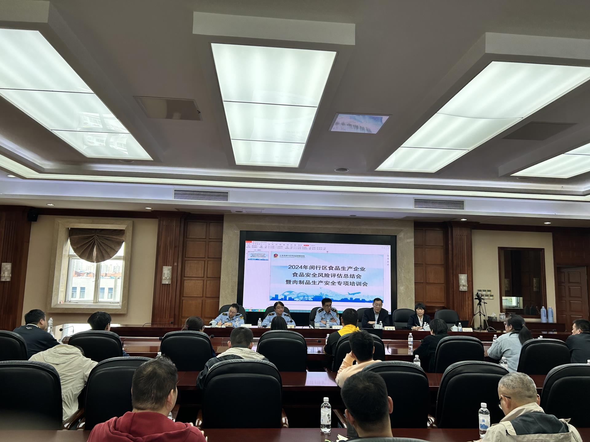 2024年10月24日,闵行区市场监督管理局召开2024年食品安全风险评估总结暨肉制品生产安全专项培训会,协会周泽琳秘书长在会上通报2024年闵行区食品生产安全风险评估状况,首席专家巢强国教授围绕肉制品生产企业良好生产规范对参会企业开展实务培训。闵行区市场监督管理局相关领导,40家食品安全风险评估企业参加此次会议。