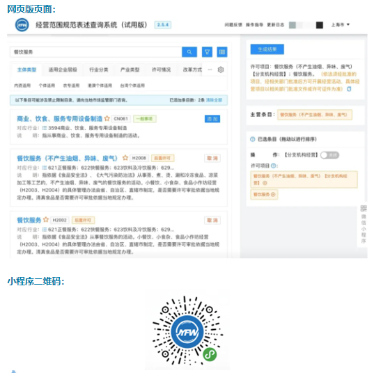 答:国家市场监管总局开发了“经营范围规范表述查询系统(试用版)”,企业只需“搜索关键词”加“勾勾选选”,就能完成经营范围登记。申请人可通过网页版(网址:https://jyfwyun.com/)和微信小程序自主查询经营范围规范表述。