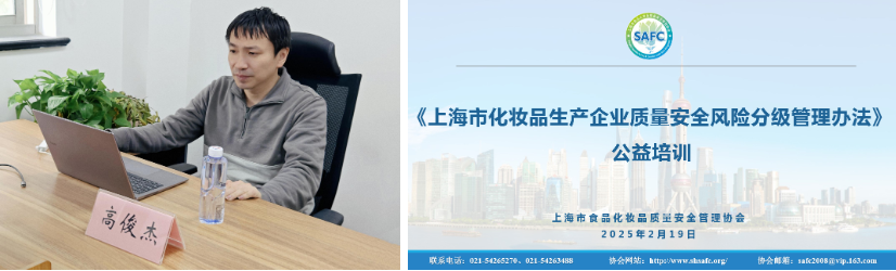 19日,协会举办“《上海市化妆品生产企业质量安全风险分级管理办法》解读”直播公益培训,邀请上海市药品监督管理局稽查局高俊杰科长,对2025年1月公布的《上海市化妆品生产企业质量安全风险分级管理办法》,结合典型案例,从制定背景及影响、分级指标解读、具体实施等方面进行全面讲解,帮助相关企业更好地理解此办法,助力加强化妆品生产企业监管,强化化妆品生产企业质量安全和风险意识,有利于优化营商环境。
