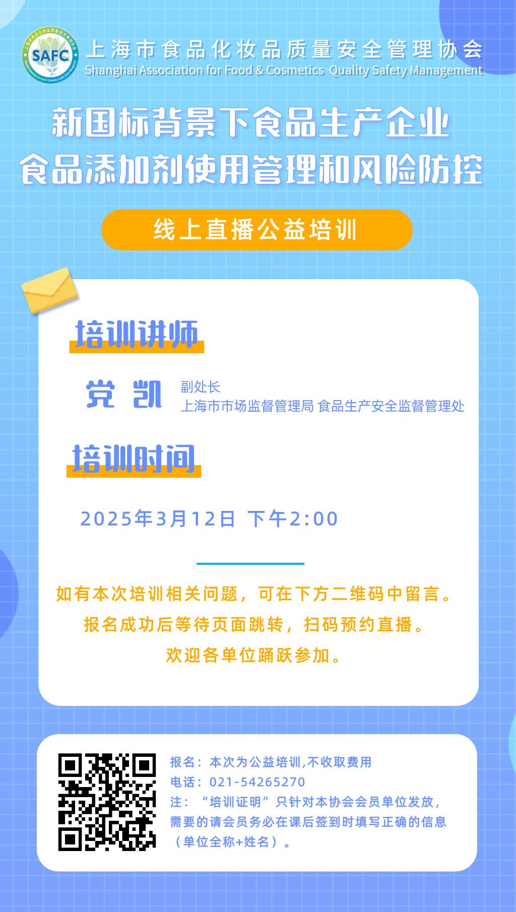 【公益培训】《新国标背景下食品生产企业食品添加剂使用管理和风险防控》 线上直播公益培训——2025年3月12日 14:00
