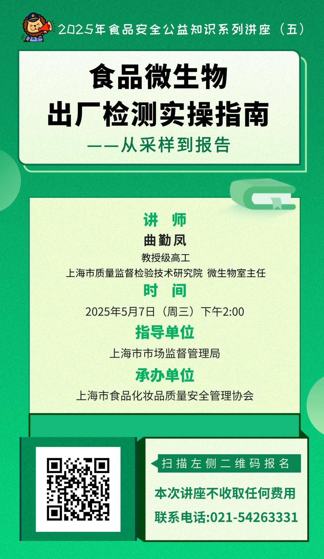 【公益讲座】2025年食品安全公益知识系列讲座(五) 食品微生物出厂检测实操指南 一从采样到报告 线上直播——2025年5月7日 14:00