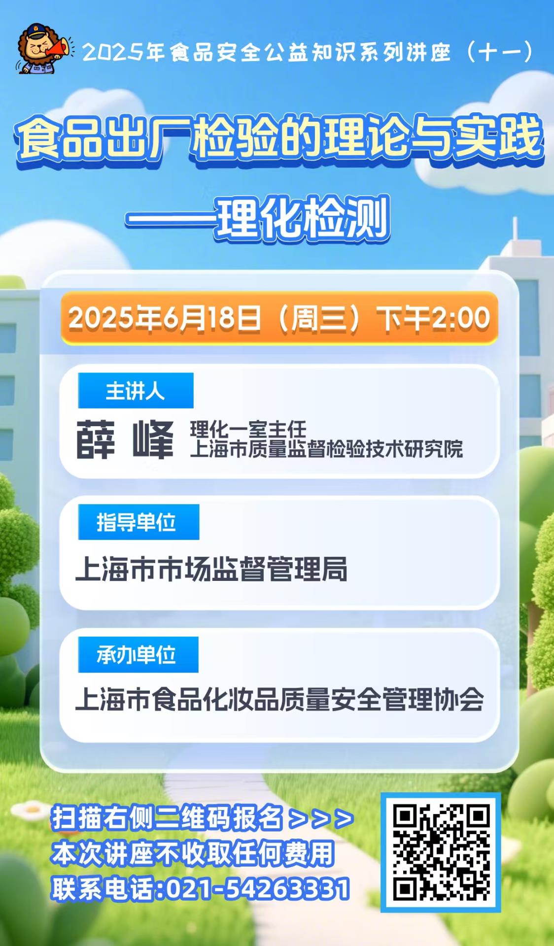 【公益讲座】2025年食品安全公益知识系列讲座(十一)食品出厂检验的理论与实践——理化检测 线上直播——2025年6月18日 14:00