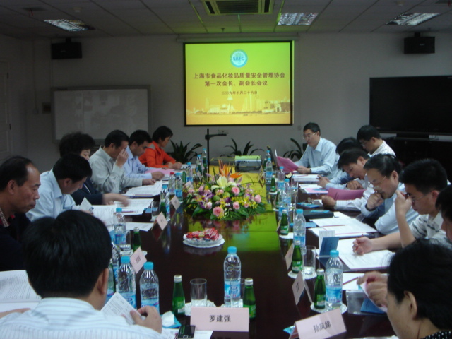 上海市食品化妆品质量安全管理协会于2009年10月26日下午在上海太太乐食品有限公司召开了第一次会长、副会长会议,会议由上海市质量监督检验技术研究院副院长、协会秘书长巢强国同志主持。协会秘书长巢强国通报了协会的自7月29日成立大会以来的工作情况、协会2010年工作思路及会费收取的建议同时讨论了协会秘书处规章制度(草拟)。