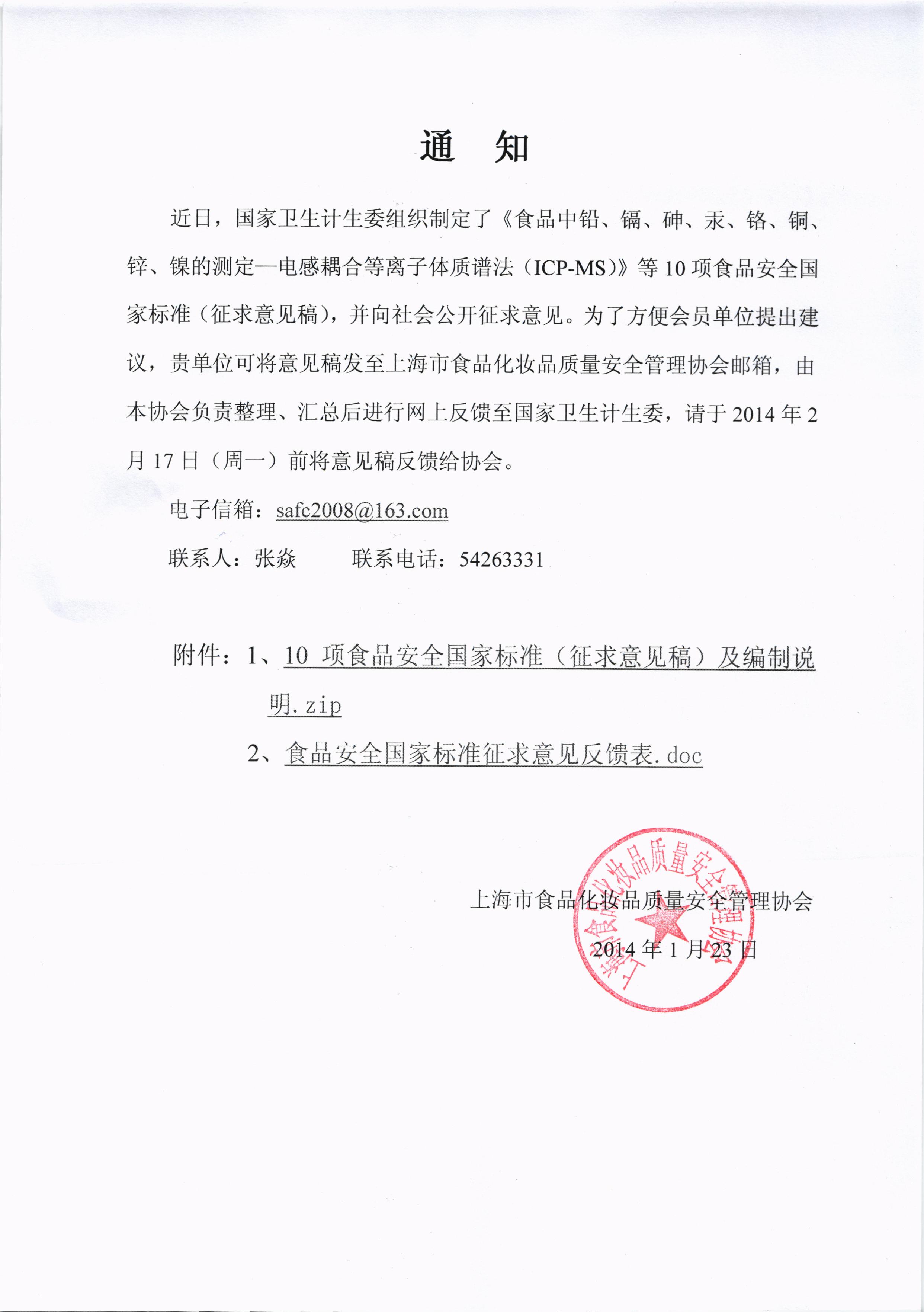 关于国家卫生计生组织的10项食品安全法规意见征集