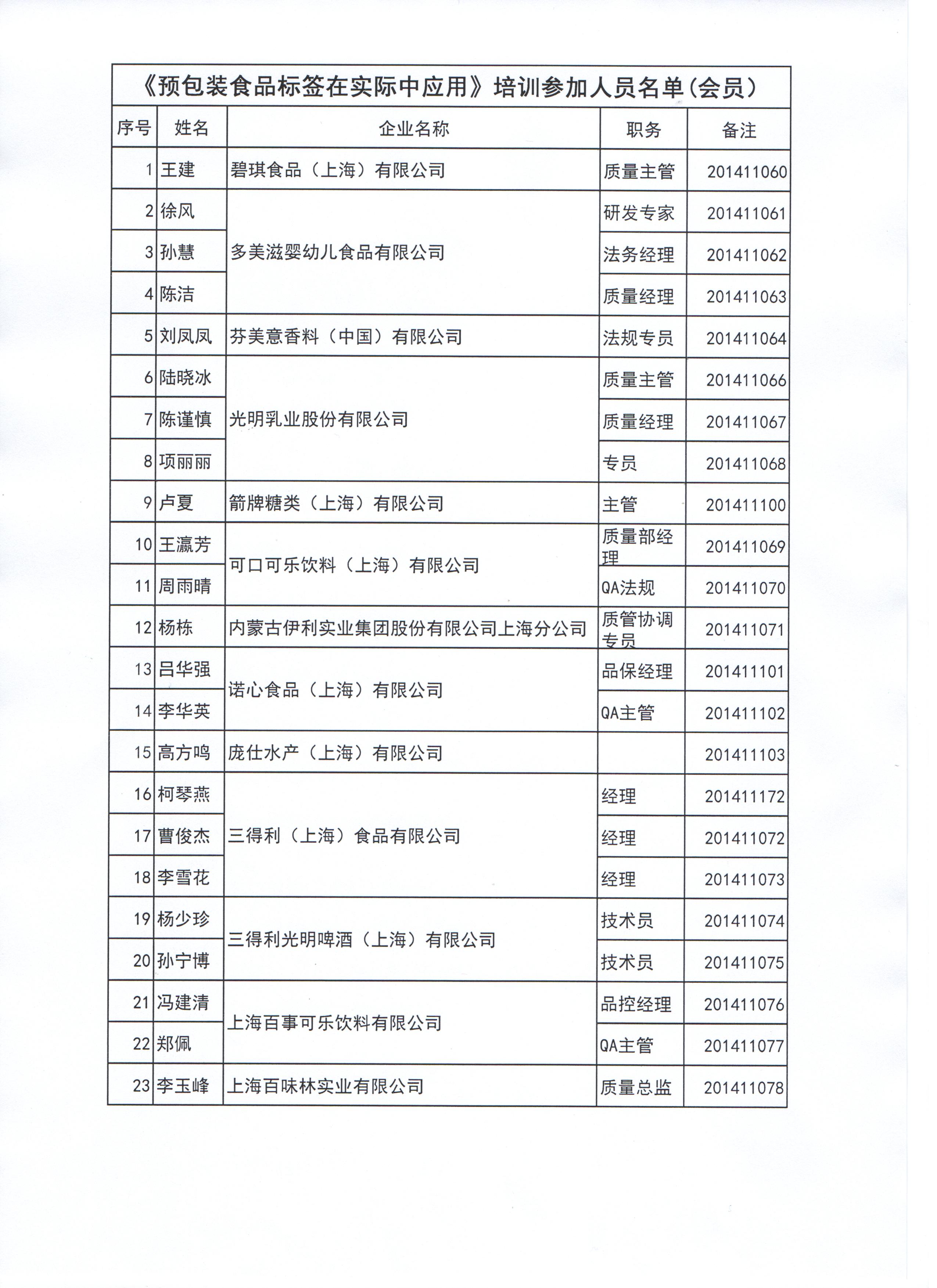 自《食品安全国家标准 预包装食品标签通则》GB7718-2011标准发布至今已实施二年多了,在这二年多时间里,大多数食品企业都在严格按照该标准规定执行,但在市局执法监督检查和抽查中,还是发现有诸多不符合该标准规定要求的情况发生。为提高食品生产企业的食品标签标注能力,帮助企业规范标签标注行为,减少因标签不合格而造成的损失,上海市食品化妆品质量安全管理协会于2014年11月11日举办《预包装食品标签在实际中应用》培训班,特邀请市食药监局的相关领导和监管人员对该标准进行深层次的剖析,并通过预包装食品标签相关实际案例和食品监督检查重点、抽查现状和判断方法,进行详细的讲解。参训人员都非常珍惜这次机会,培训完毕,都不愿离去,积极提问,老师一一给予详细解答。