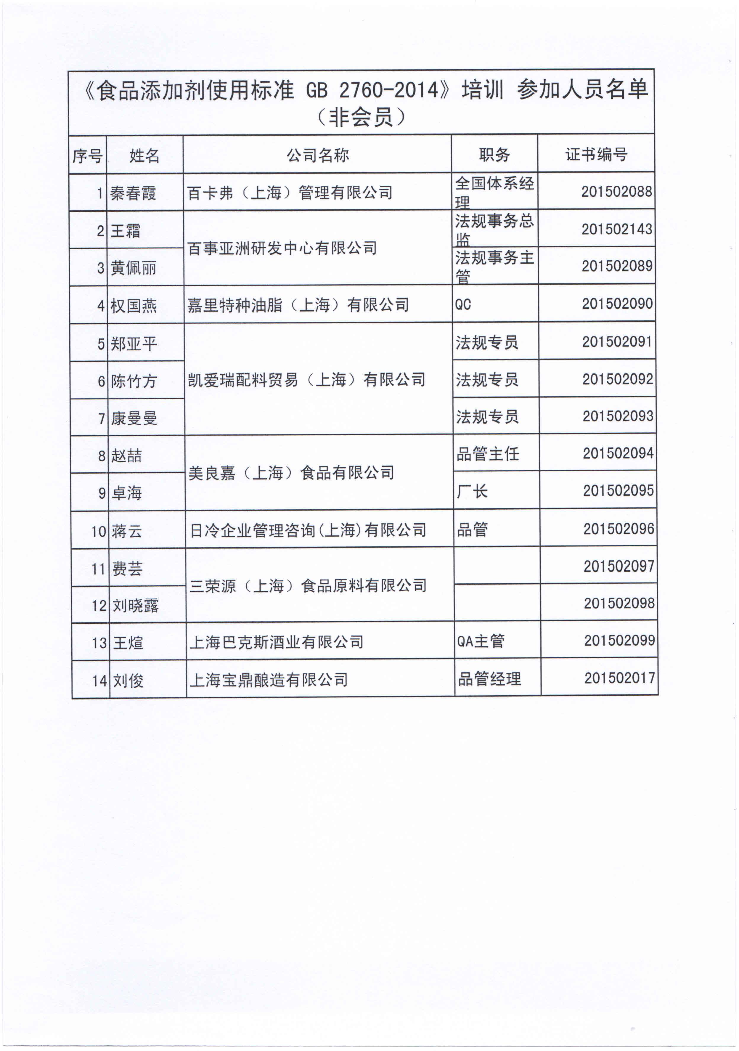 此标准自发布至今一个多月的时间里,协会不断收到会员单位相关问题,为及时帮助企业正确运用,上海市食品化妆品质量安全管理协会于2015年2月6日举办培训班,邀请市食药监局执法总队相关领导对GB2760-2014标准的修改、增补等内容进行了详细的解读,并结合企业通过邮件发到协会的具体问题给予解答。