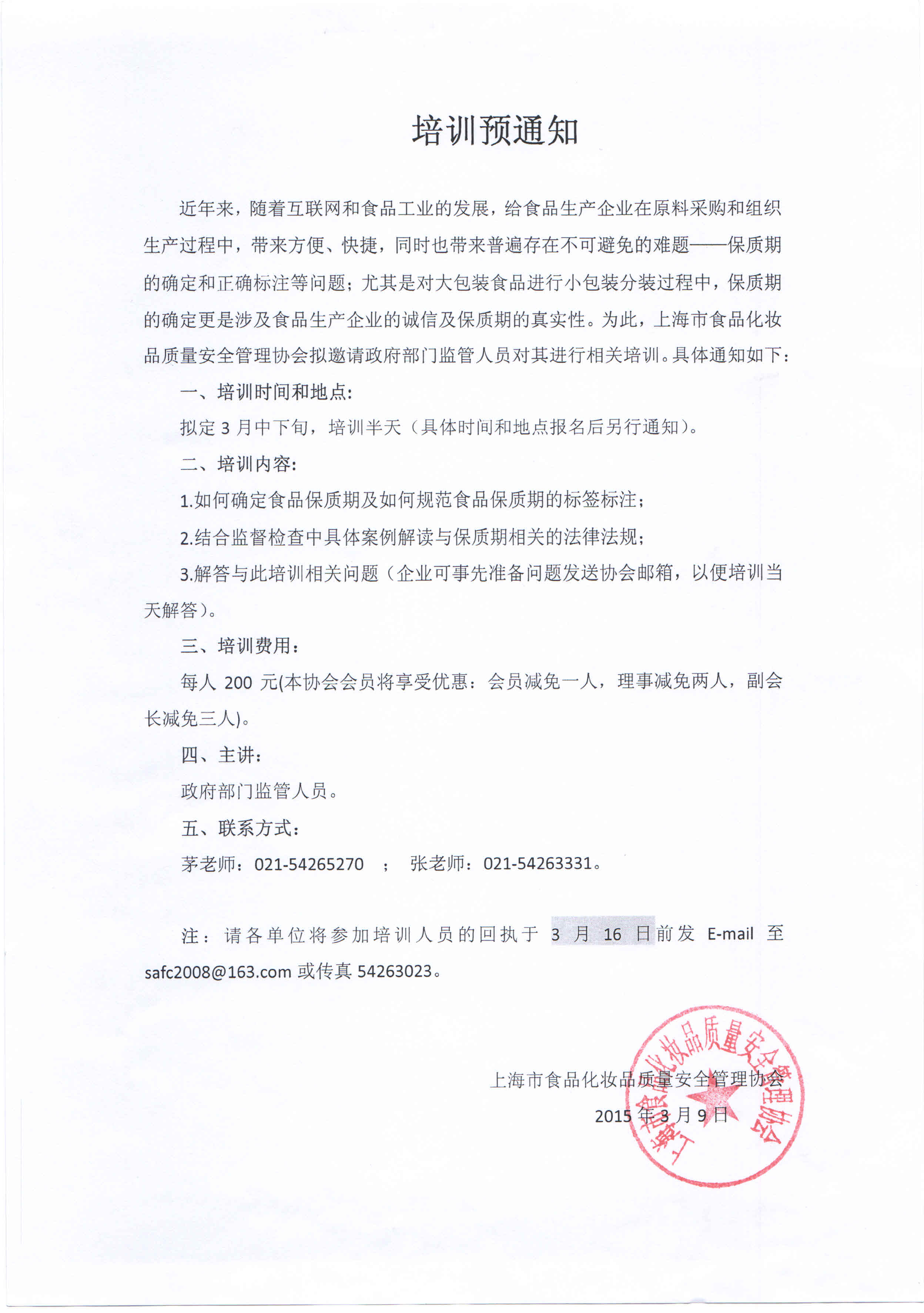 食品生产过程中,保质期的确定及规范标注培训 预通知