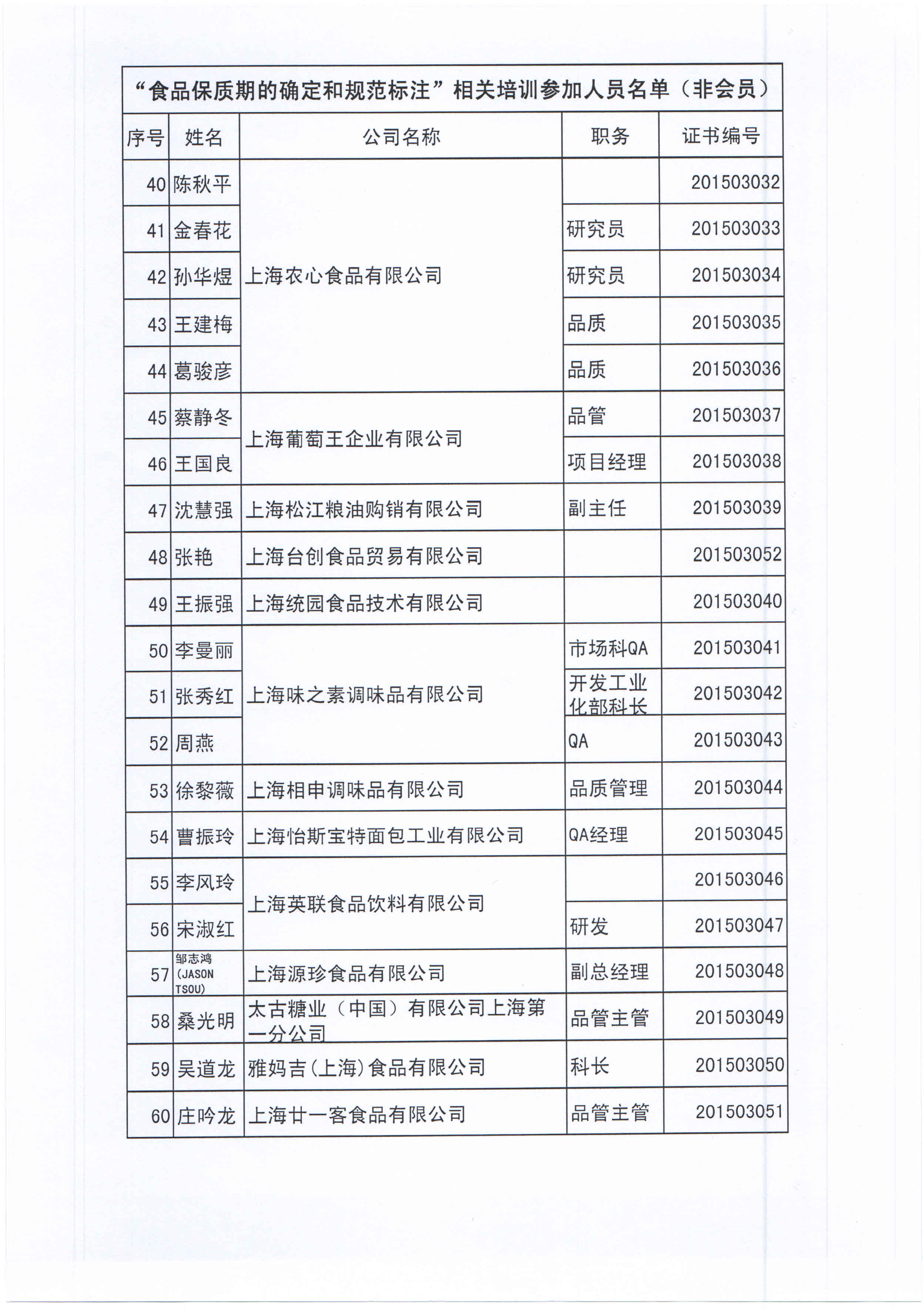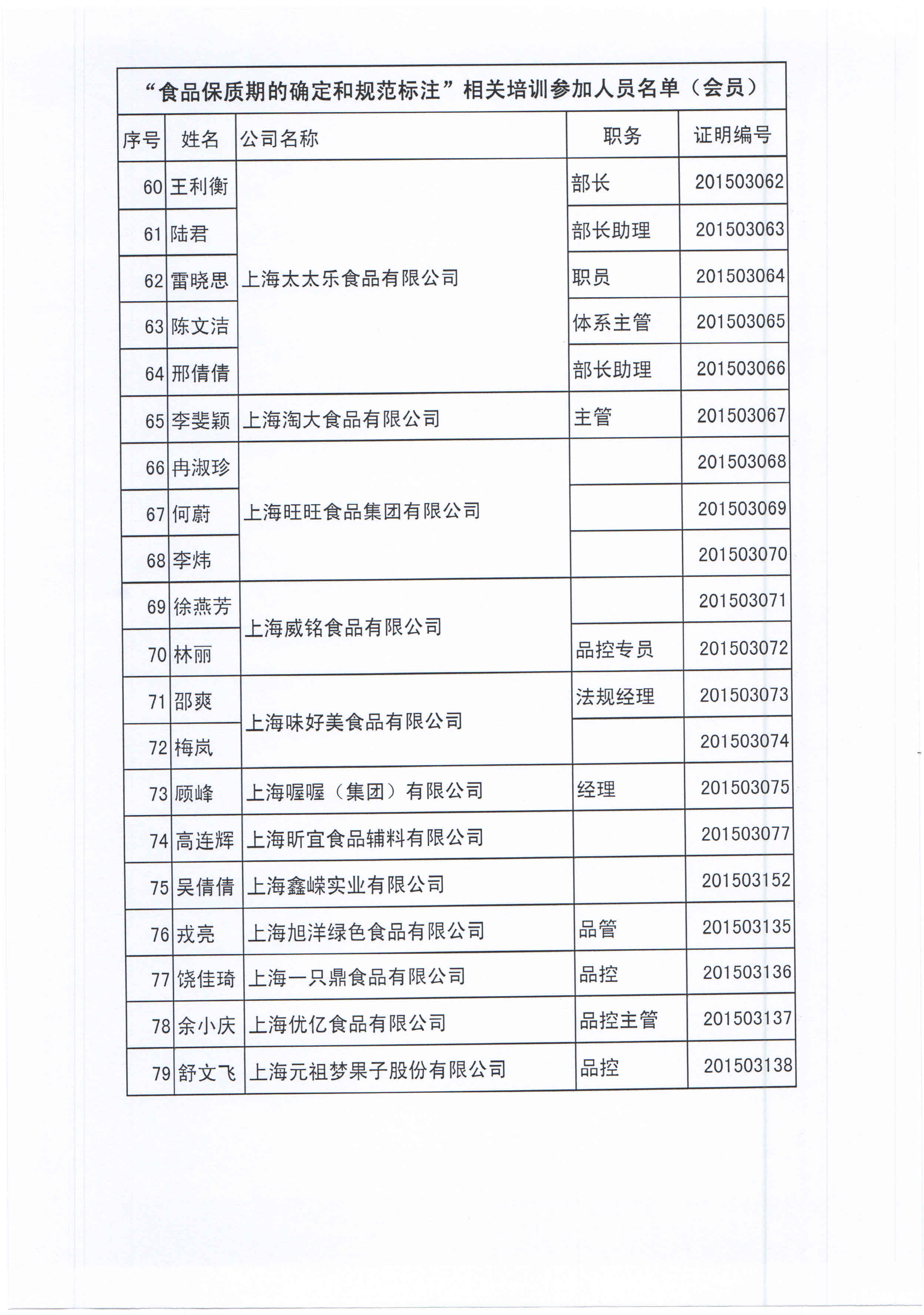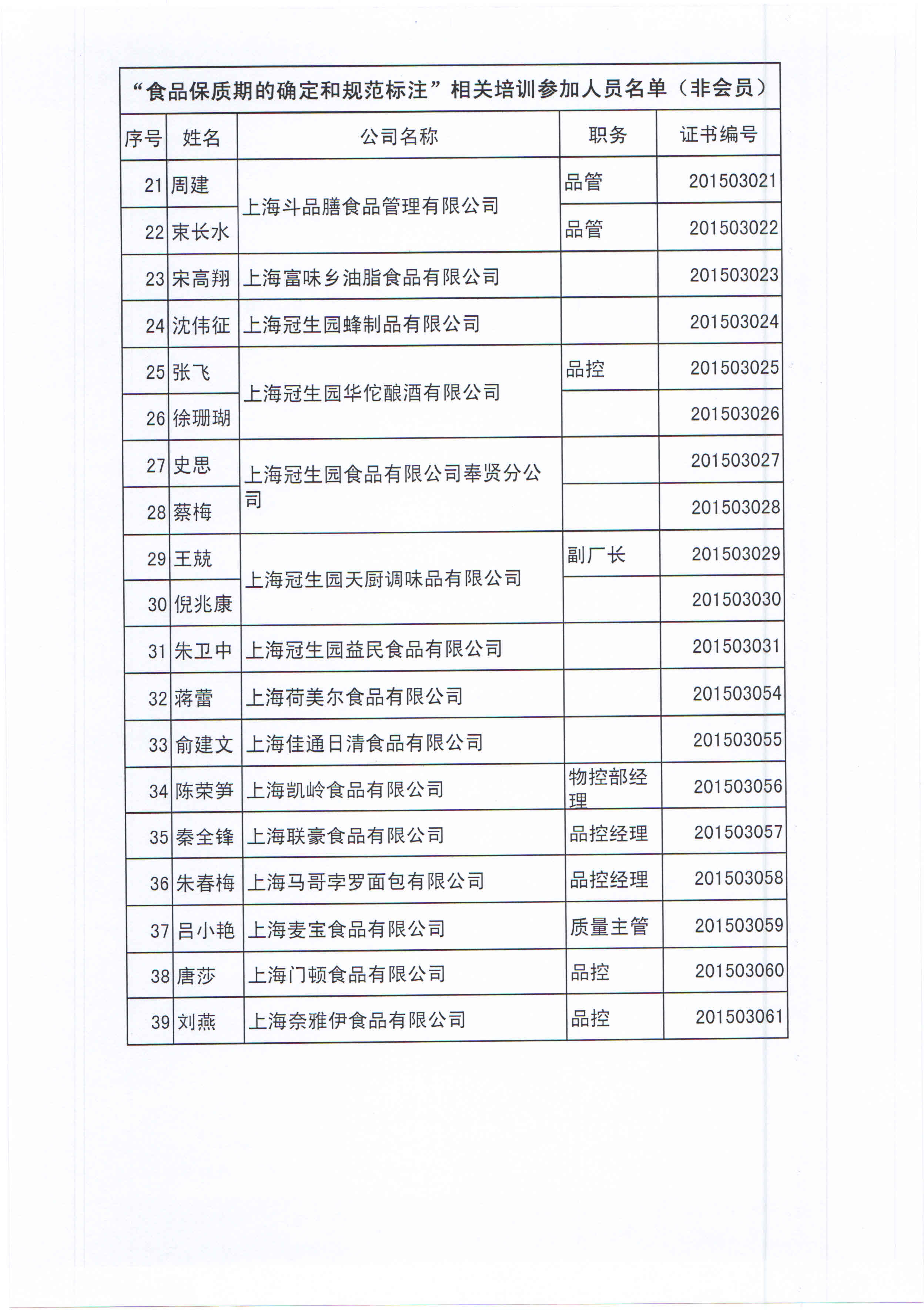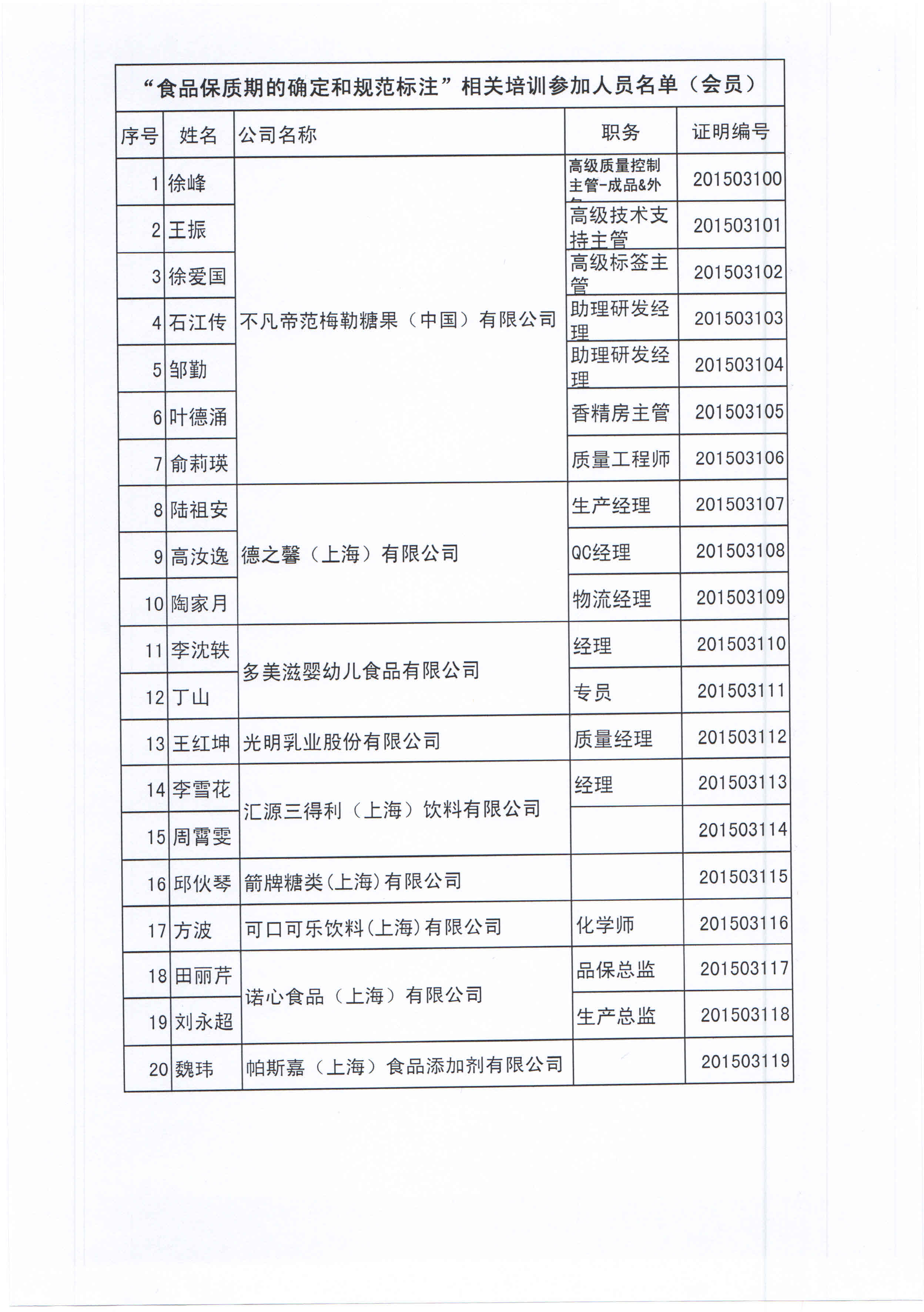协会近期举办《食品保质期的确定和正确标注》培训班