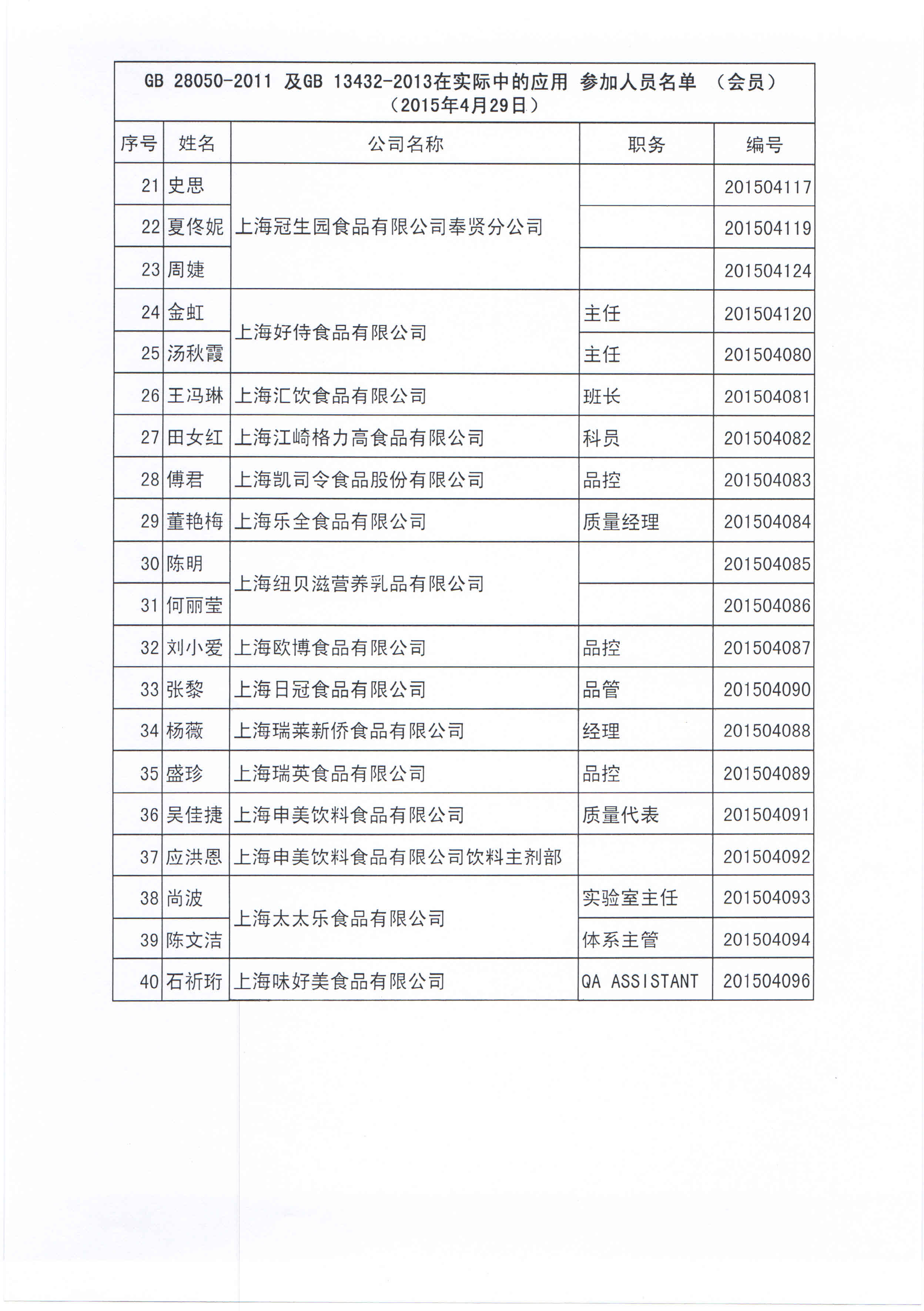 本市食品生产企业相关人员共 67 人参加了此次培训。