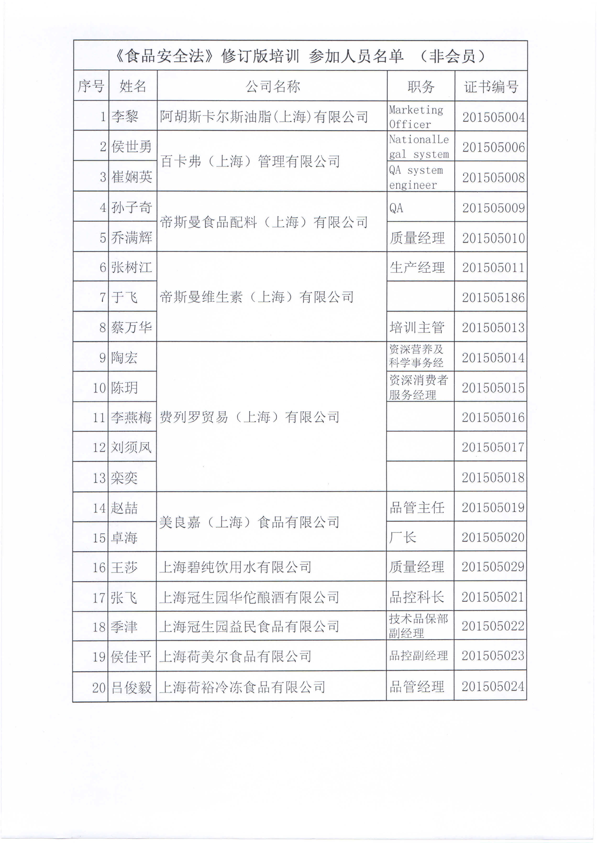 该法自审议通过之日起,协会不断收到会员单位的咨询,为帮助企业贯彻落实好《食品安全法》修订版,进而提升食品安全保障水平,上海市食品化妆品质量安全管理协会于2015年5月27日及时举办这个培训班,特邀请市食品药品监督管理局食品生产监督管理处的宋庆训博士,为大家阐述《食品安全法》修订的原因并对其中的亮点进行解读,同时结合企业通过邮件发到协会的具体问题给予一一解答和讲解。