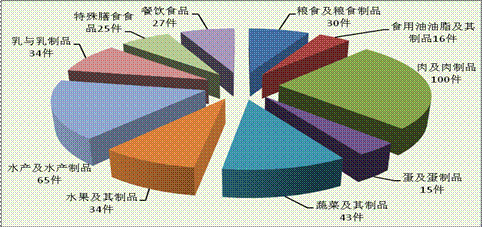 依据现有国家或地方标准评判,389件样品中10件样品不合格,样品总体合格率为97.4%,环比下降0.3个百分点,同比上升1.8个百分点。其中,蛋及蛋制品、水果及其制品、乳及乳制品、特殊膳食食品、食用油及其制品和餐饮食品等6大类食品合格率均为100%;肉及肉制品、蔬菜及其制品、粮食及其制品和水产及其制品等4大类食品的合格率分别为98.0%、97.7%、96.7%和90.8%。对不合格食品,市食药监局已按规定开展后续核查处置工作,落实下架停售、督促整改和行政处罚等措施。