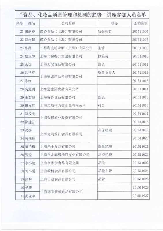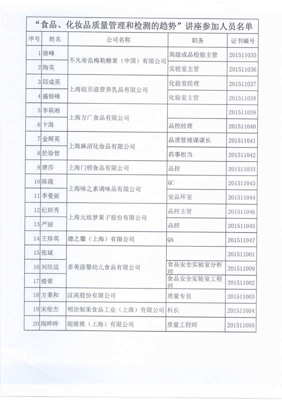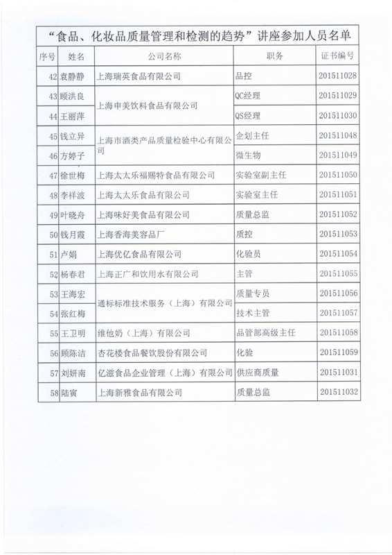 11月12日,讲座在上海海悦酒店2号楼2楼会议厅举办,共有58位食品化妆品行业代表出席。