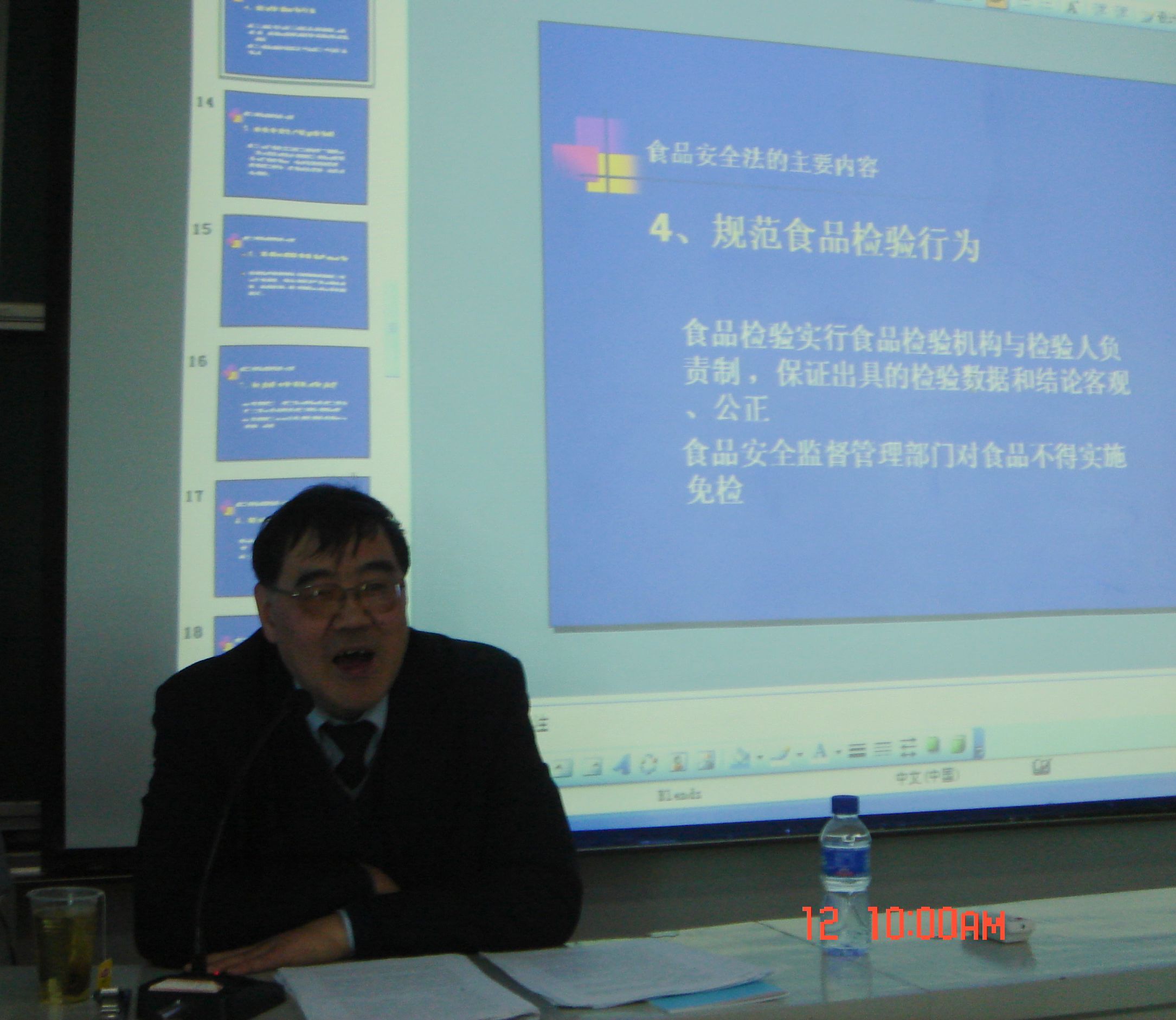 姚永栋老师分别从《食品安全法》的立法背景、《食品安全法》的主要内容和食品生产经营者的责任等三方面进行了讲授。