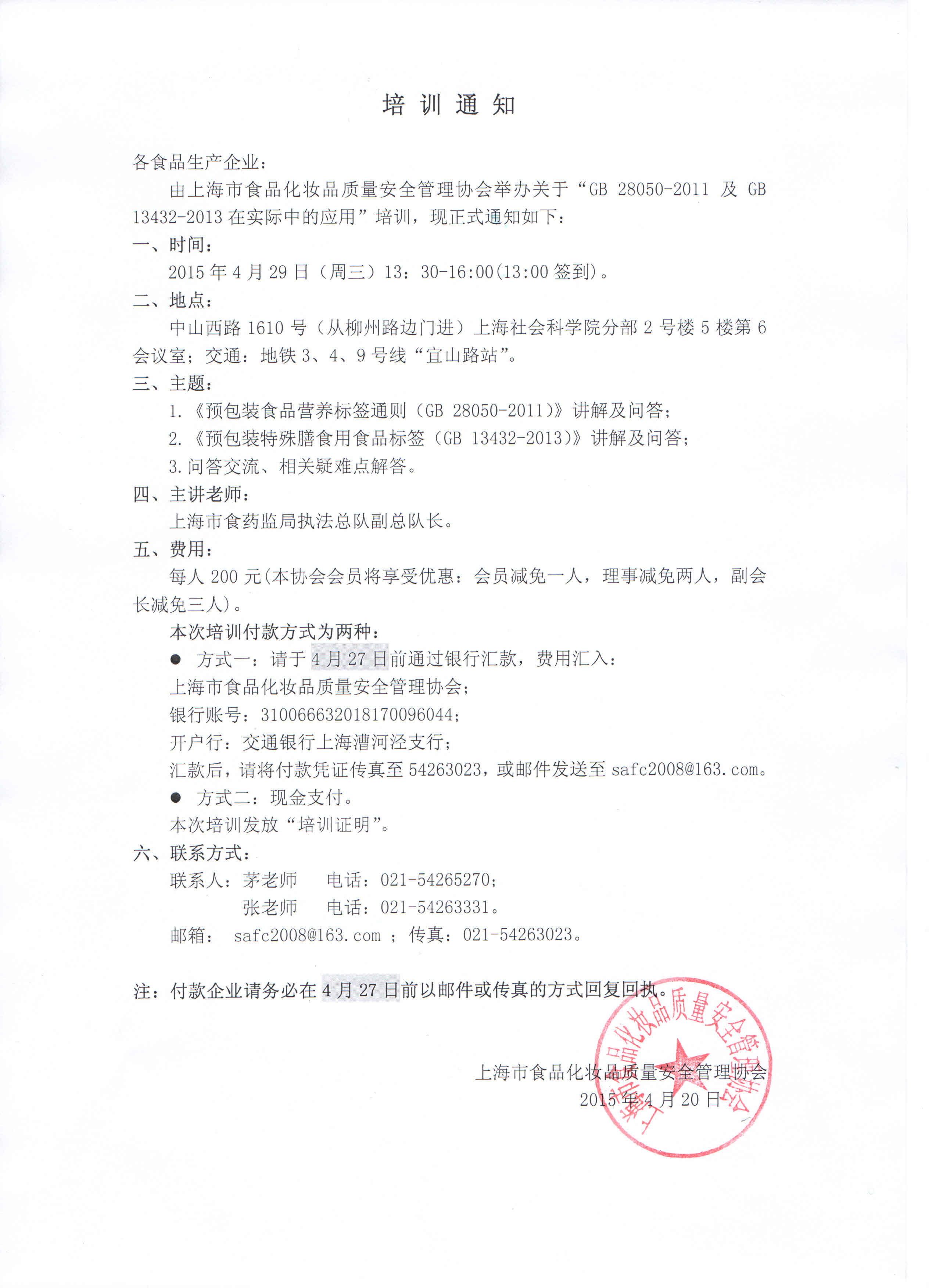 关于“GB_28050-2011_及GB_13432-2013在实际中的应用”培训_正式通知