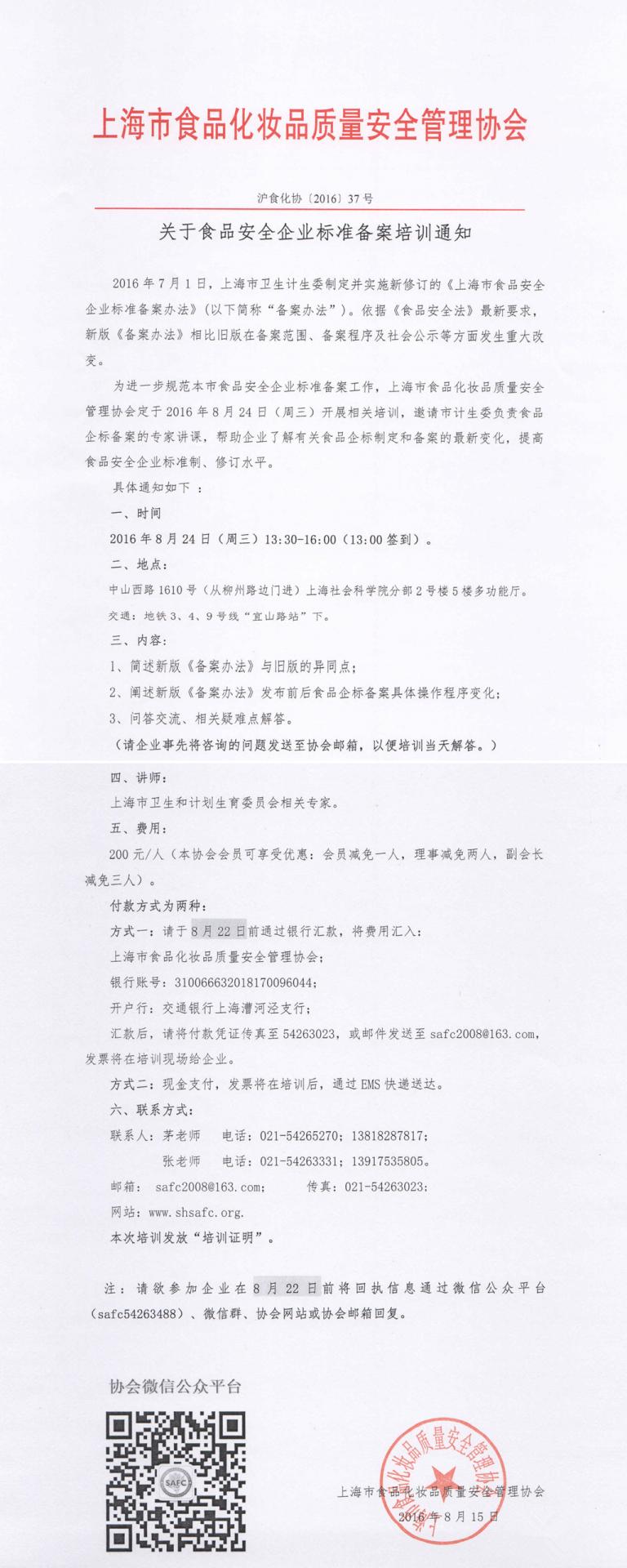 关于食品安全企业标准备案培训通知