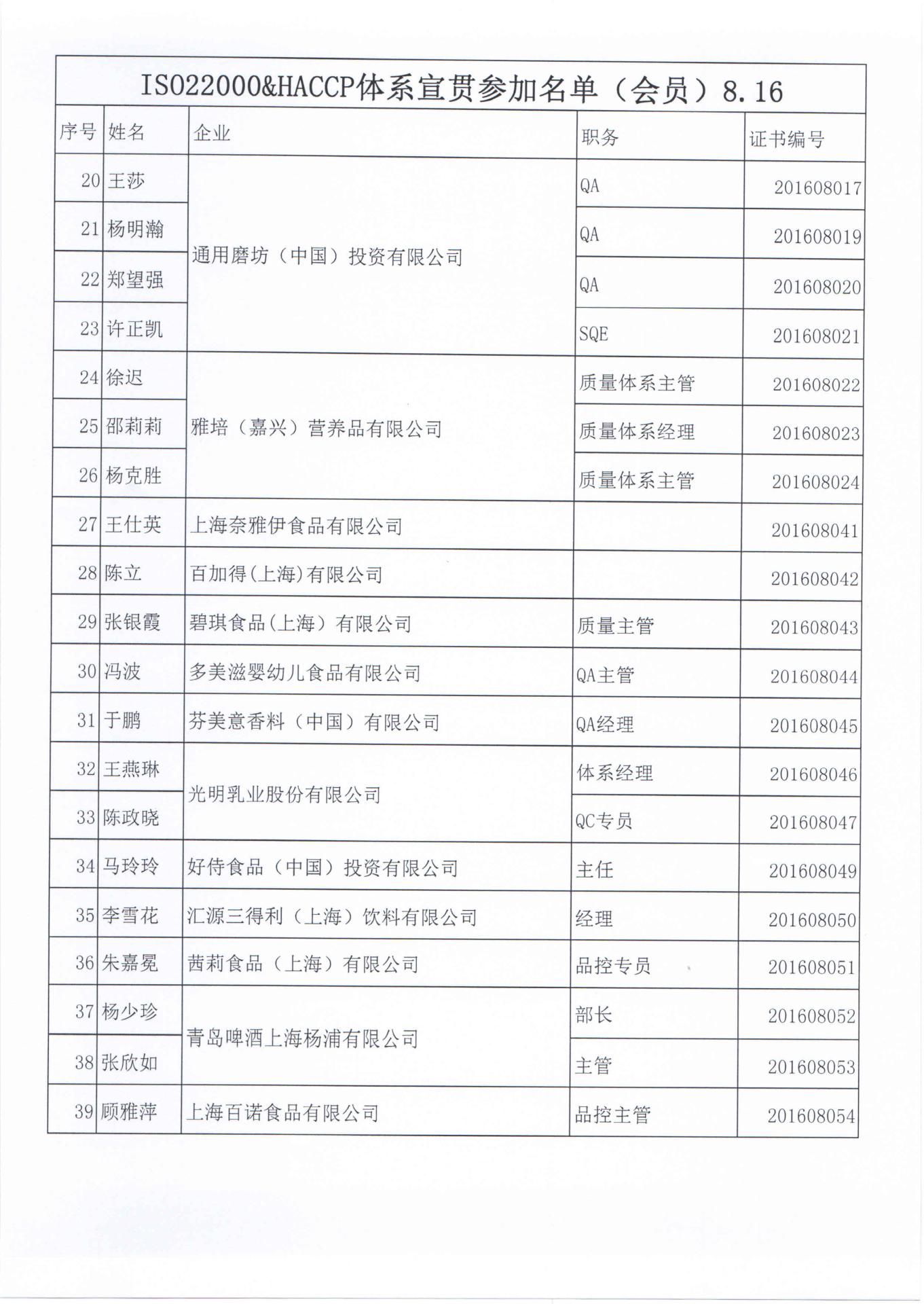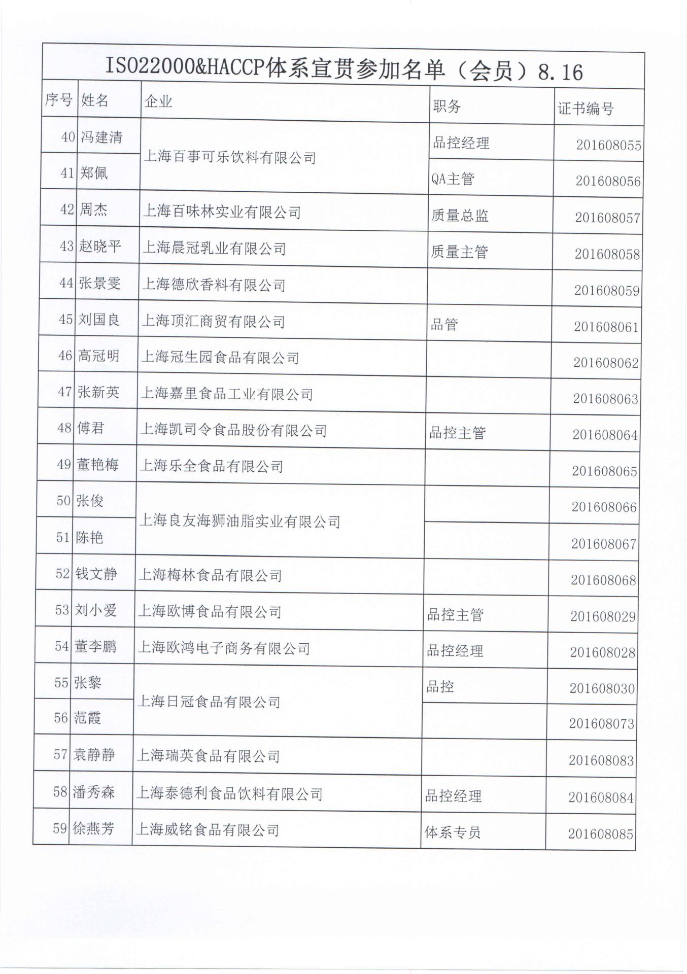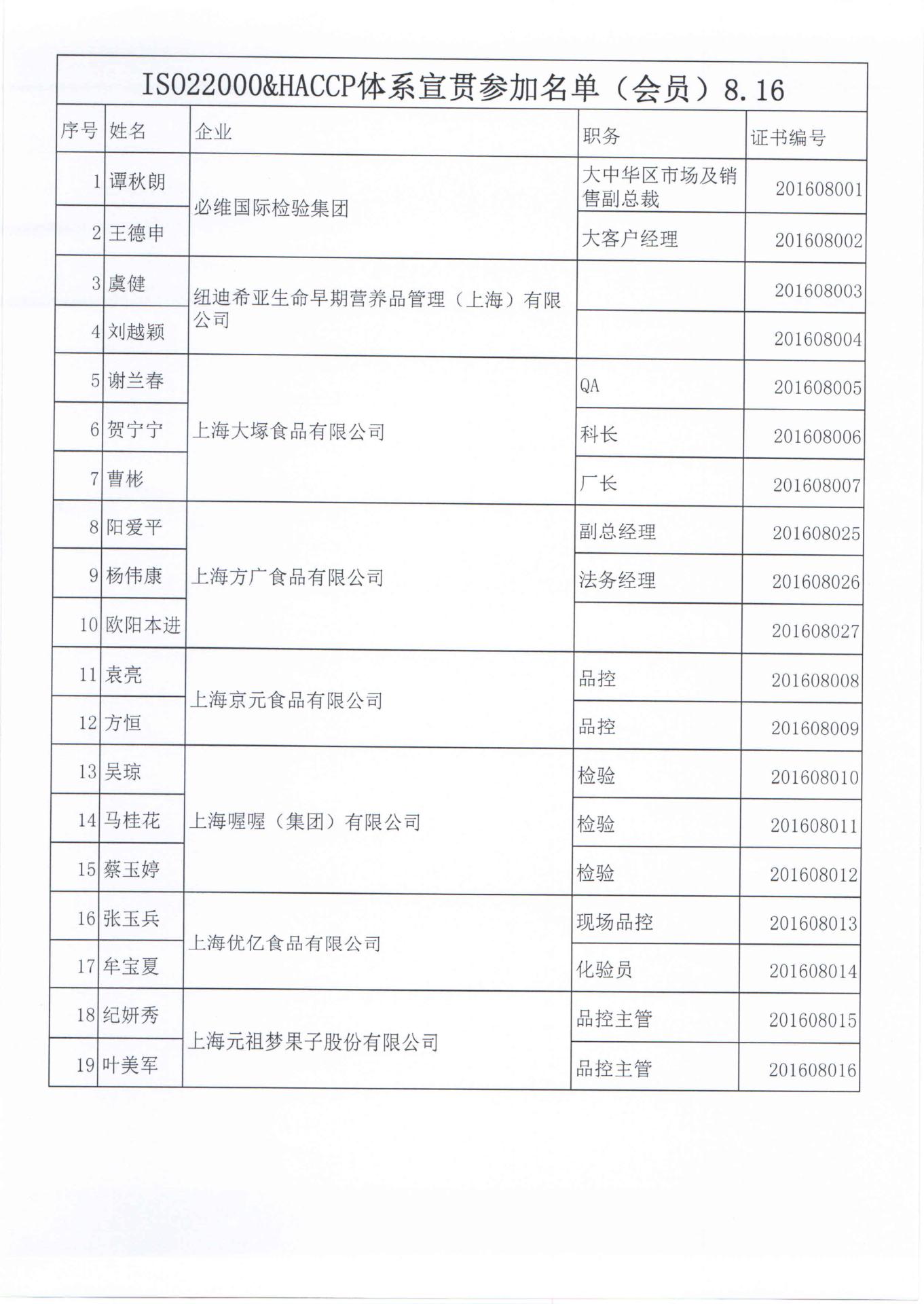 2016年8月16日,上海市食品化妆品质量安全管理协会在上海质量教育培训中心多功能厅开展针对ISO22000:2005和HACCP体系的宣贯,以ISO22000标准为主体,邀请上海质量体系审核中心(SAC)专家、上海质量教育培训中心管理者代表、高级体系审核员潘盈高级工程师授课。