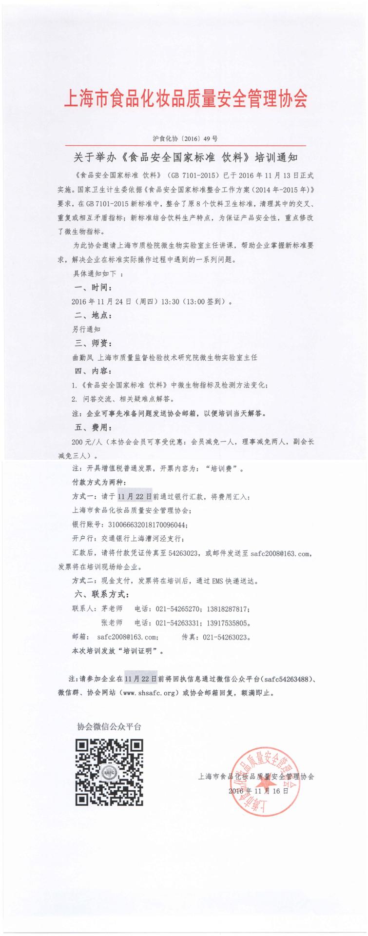 关于举办《食品安全国家标准 饮料》培训通知