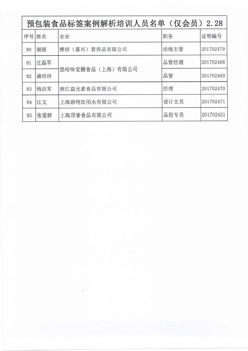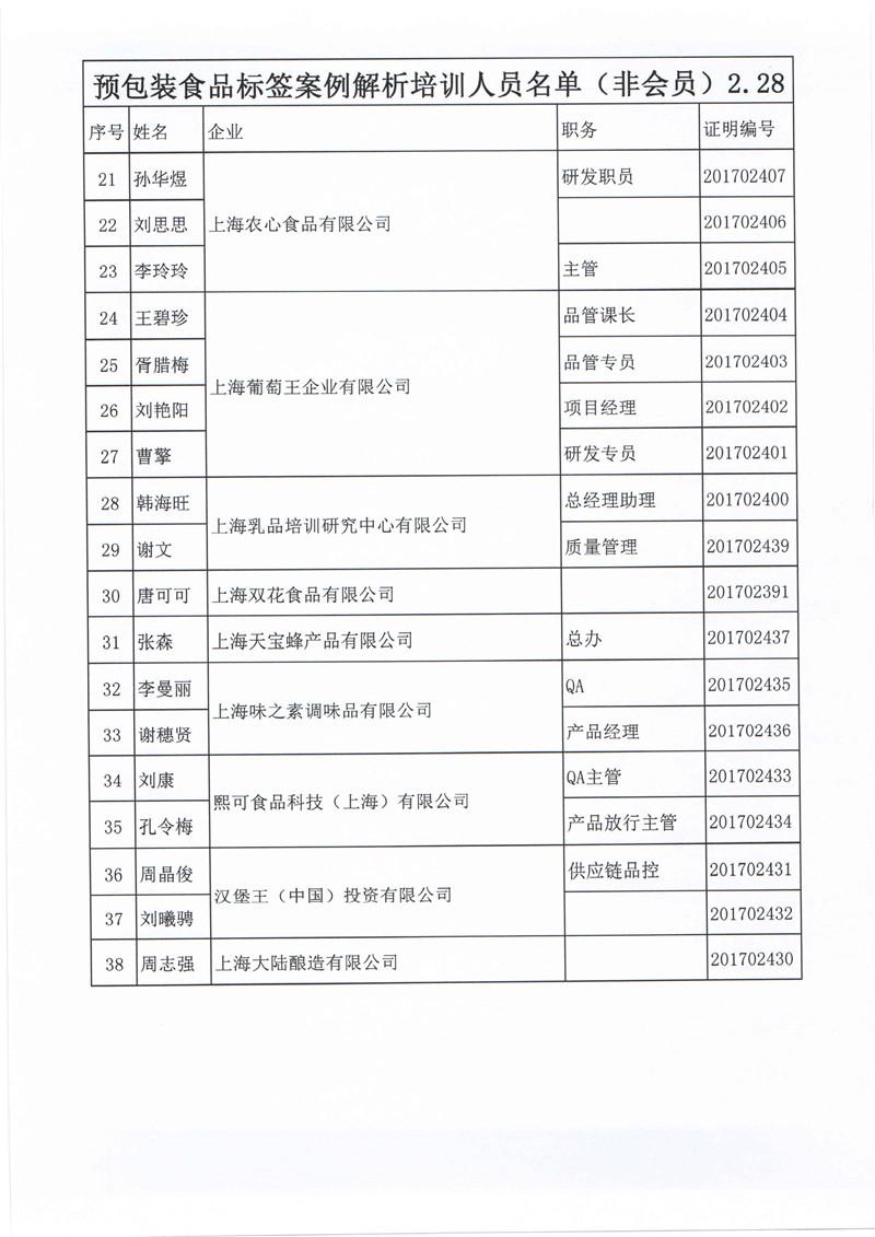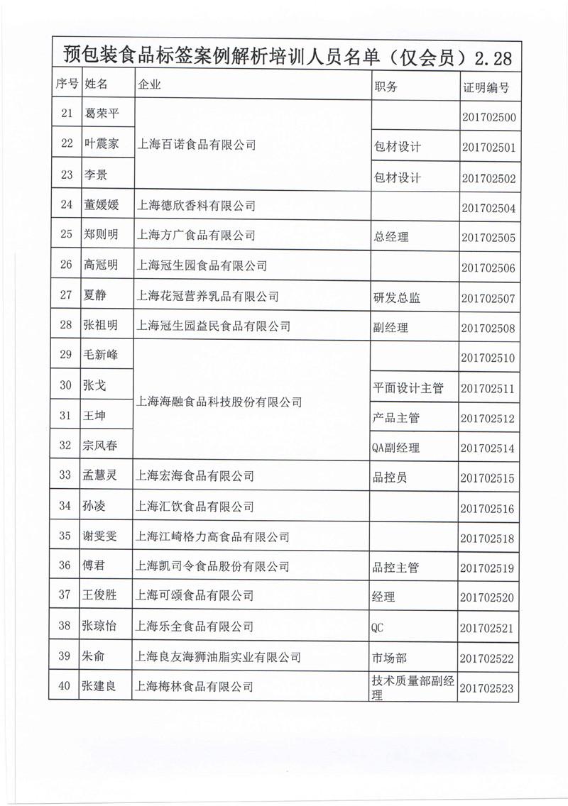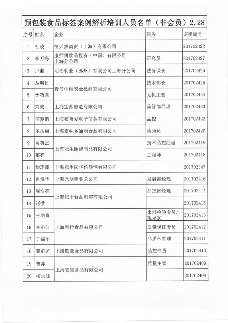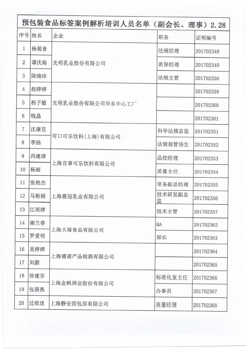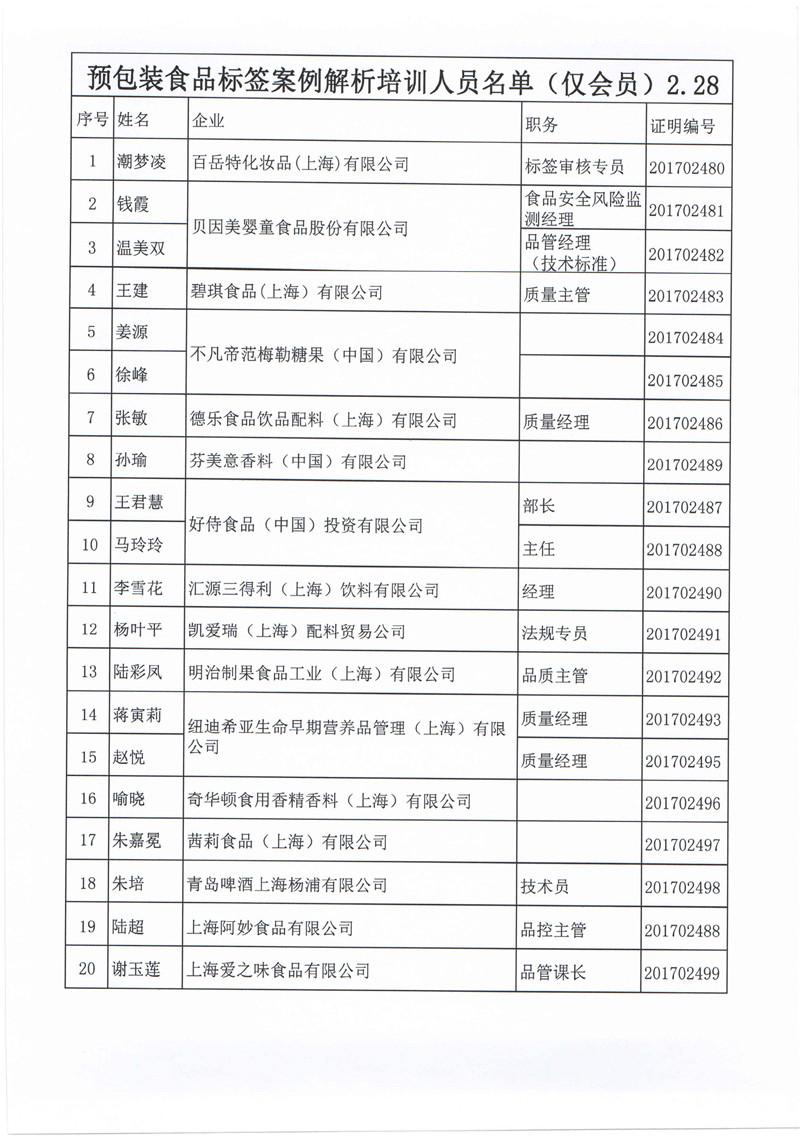 亿滋食品企业管理(上海)有限公司、上海大塚食品有限公司、上海花冠营养乳品有限公司等107家食品生产企业167人,参加了此次培训。