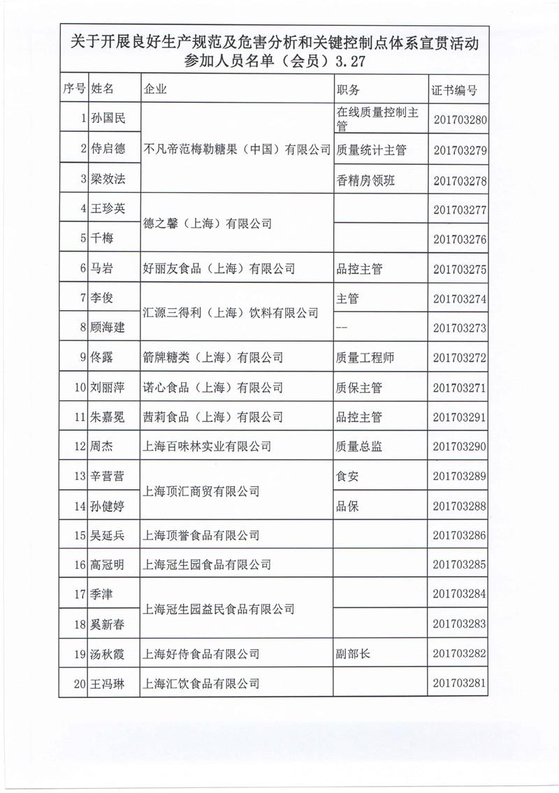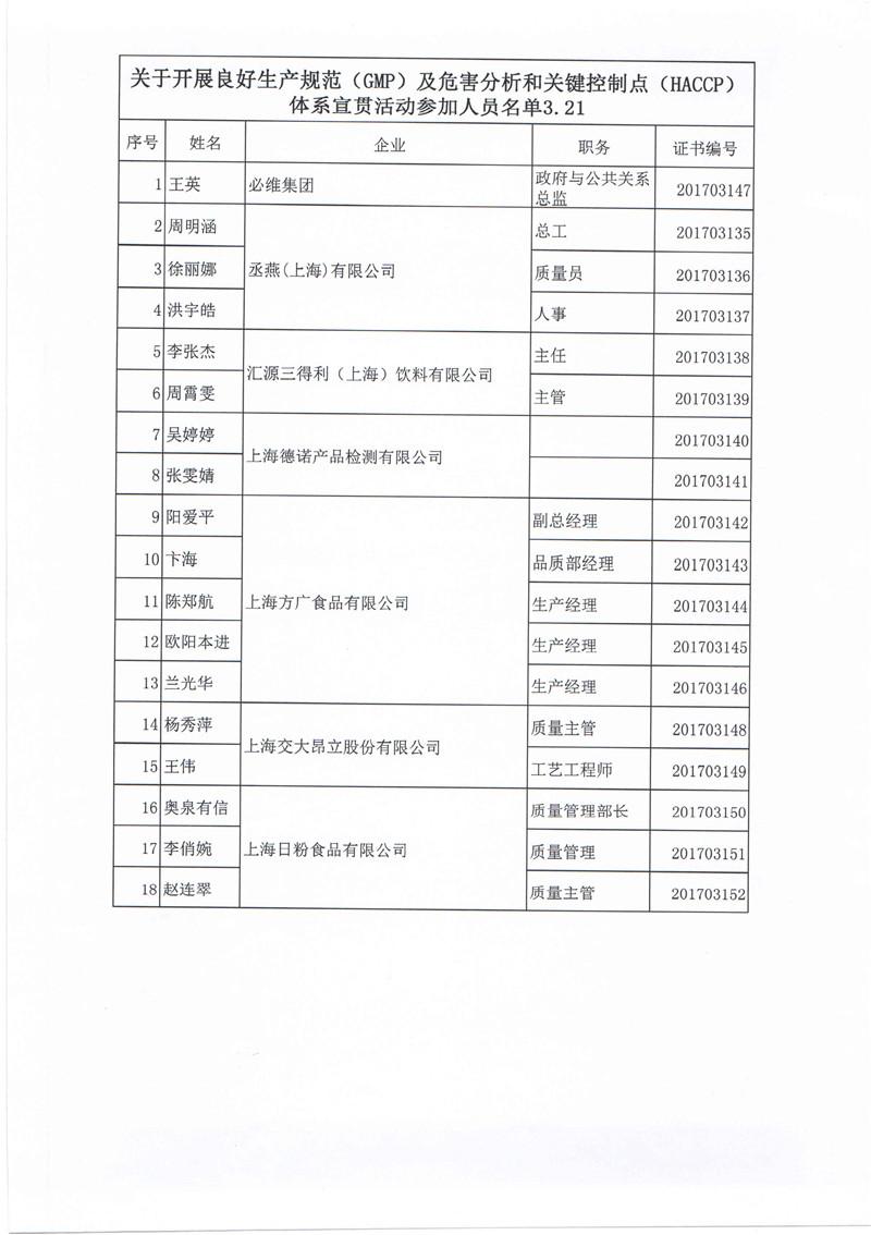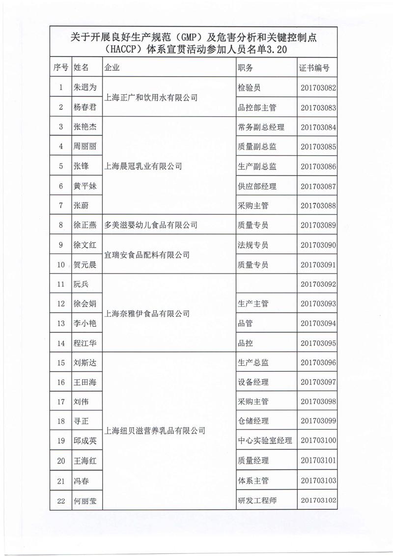 ——上海市食品化妆品质量安全管理协会组织食品生产企业进行GMP/HACCP体系宣贯