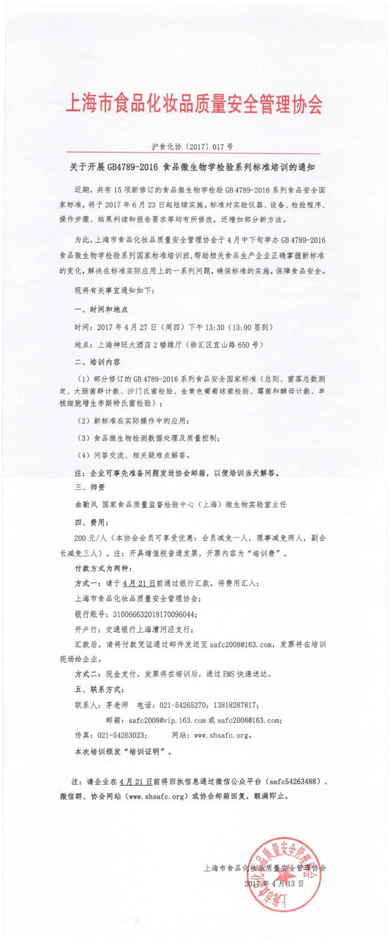 关于开展GB4789-2016 食品微生物学检验系列标准培训的通知