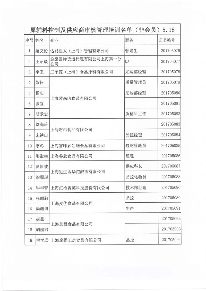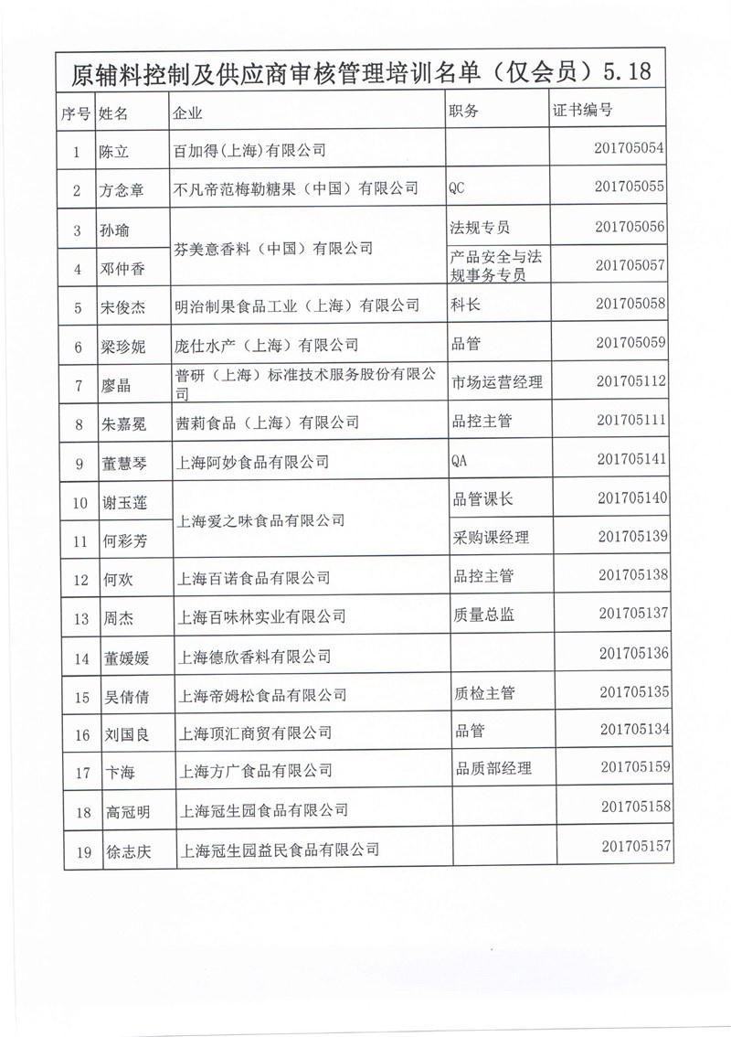 ——上海市食品化妆品质量安全管理协会组织食品生产企业举办《原辅料控制及供应商审核管理》培训