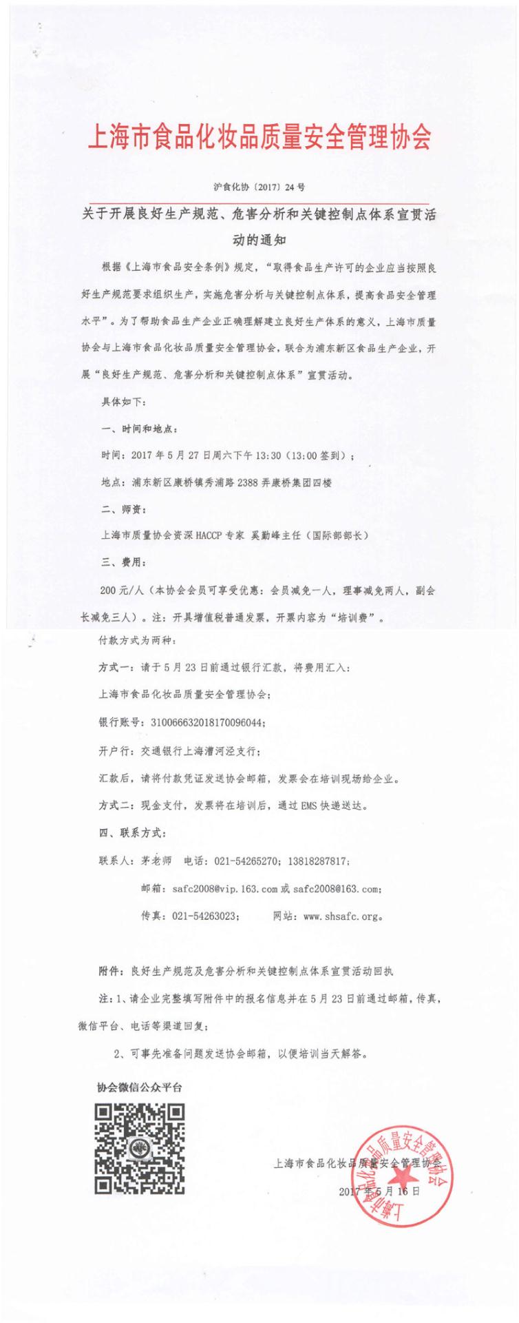 关于开展良好生产规范(GMP)及危害分析和关键控制点(HACCP)体系宣贯活动的通知-浦东