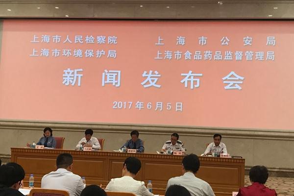 6月5日下午,上海市食品药品监督管理局会同上海市人民检察院、上海市公安局、上海市环境保护局召开联合新闻发布会,通报打击危害食品药品安全违法和破坏环境资源犯罪工作情况,凝聚社会共识,共同参与食品药品、环境领域社会治理创新,全力保障广大市民“舌尖上的安全”,保护上海的绿水青山。