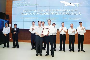 为上海飞机客服有限公司颁发进口CCC产品诚信示范企业证书