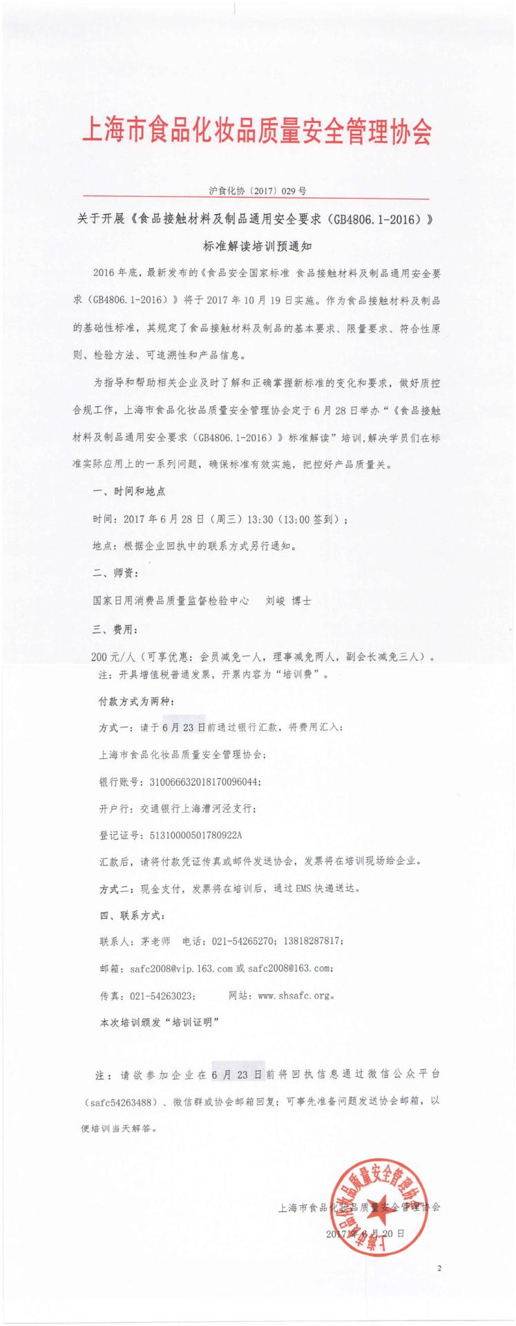 关于开展“《食品接触材料及制品通用安全要求(GB4806.1-2016)》标准解读”培训预通知