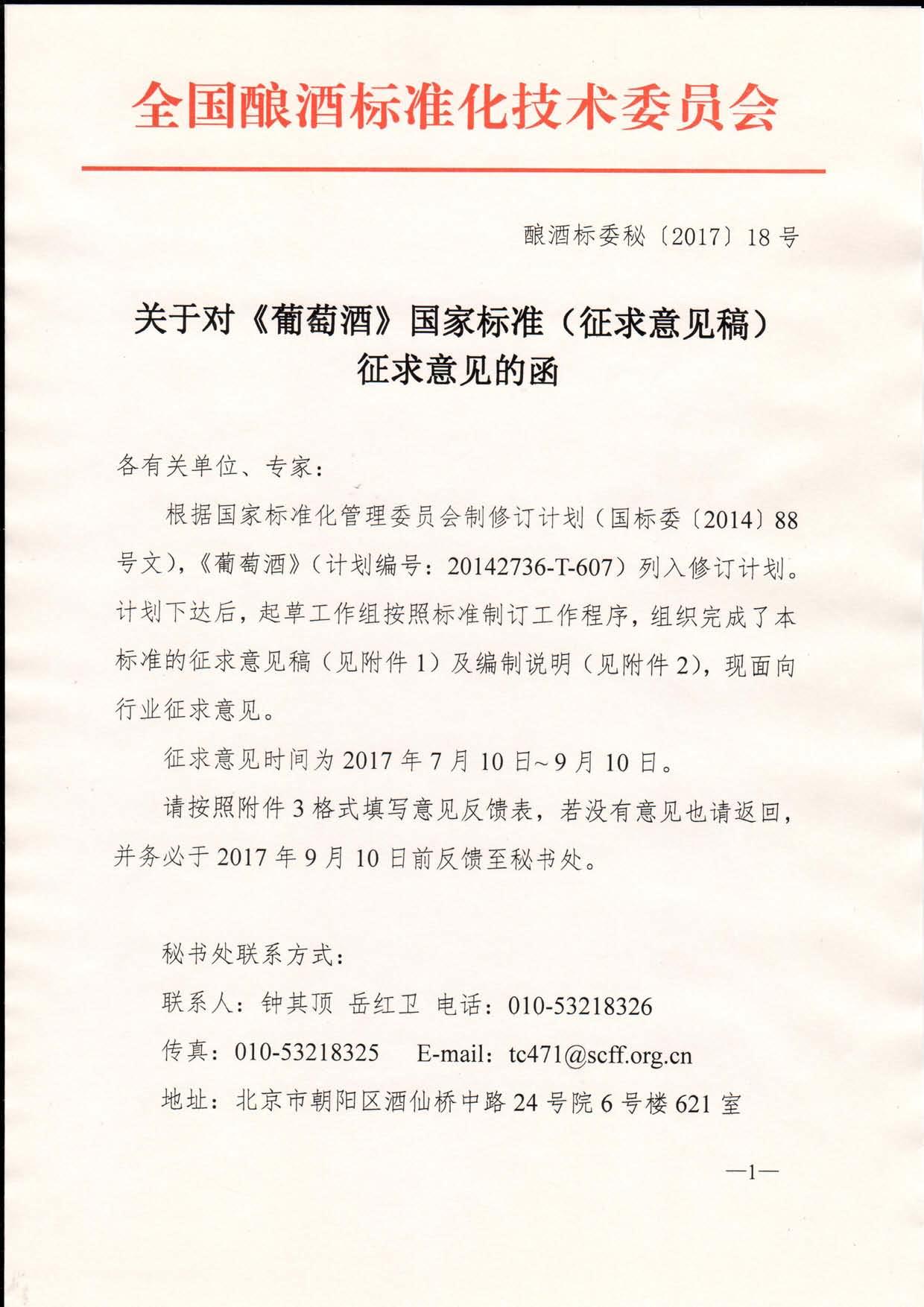 附件1 《葡萄酒》国家标准 征求意见稿.pdf 附件2 《葡萄酒》国家标准 编制说明.pdf 附件3 《葡萄酒》国家标准征求意见反馈表.doc