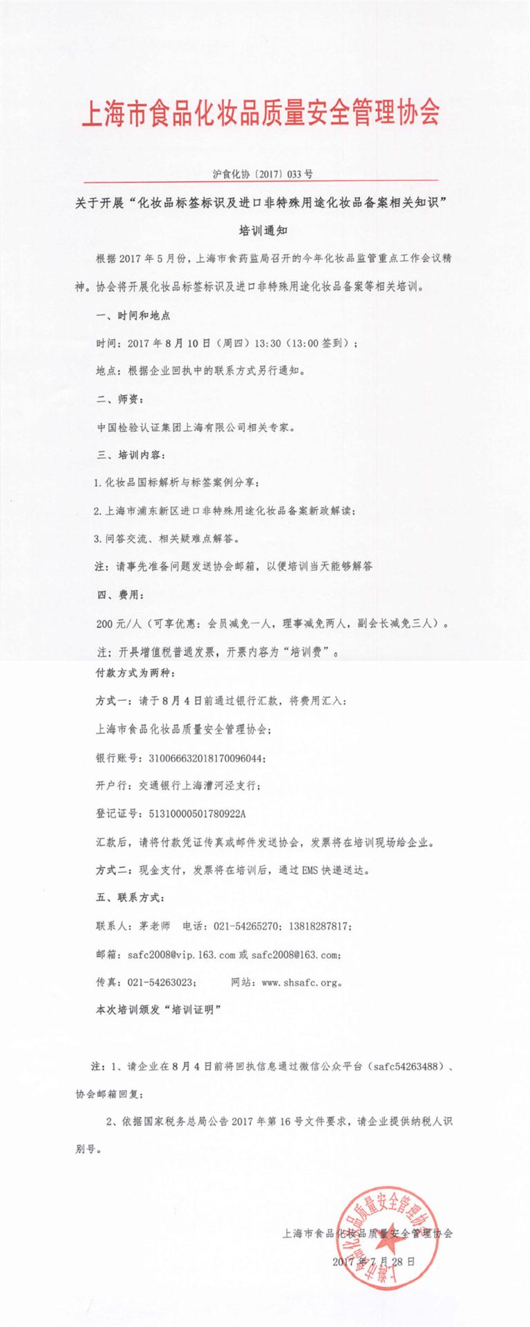 关于开展“化妆品标签标识及进口非特殊用途化妆品备案相关知识”培训通知