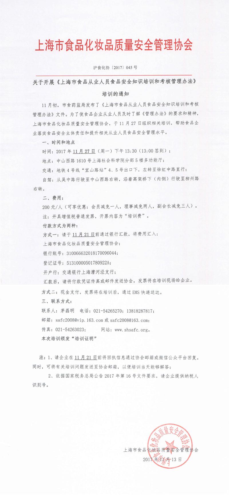 关于开展《上海市食品从业人员食品安全知识培训和考核管理办法》培训的通知