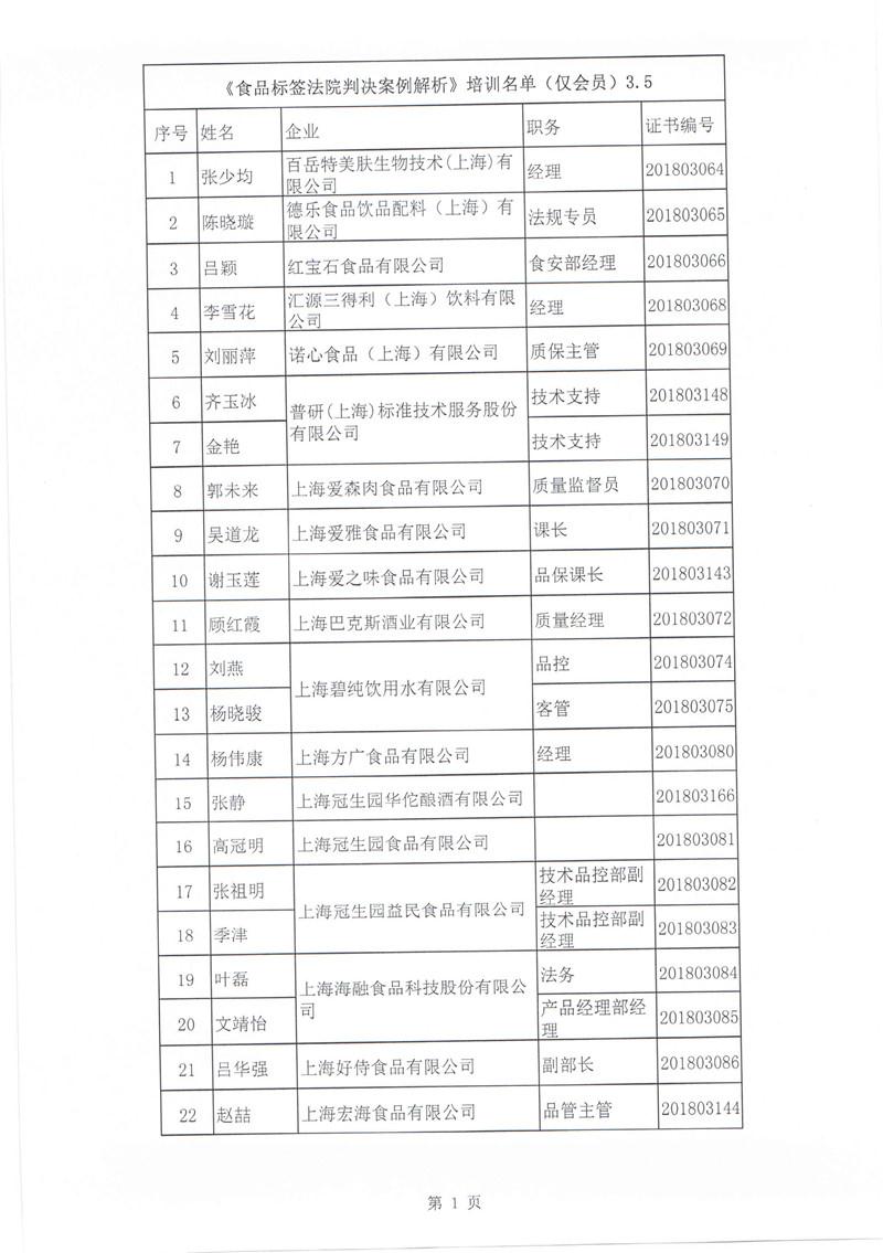 本次《食品标签法院判决案例解析》培训班,共有86家企业的132人参加。